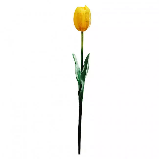 Одиночна квітка тюльпана з листочками зроблений з тисненого шовку