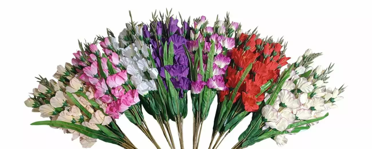 Одиночна штучна гідка гладіолус бавовна люкс 7 голів 64 см 100 шт в уп