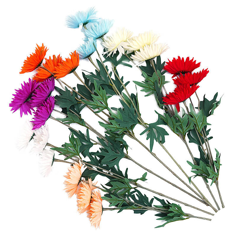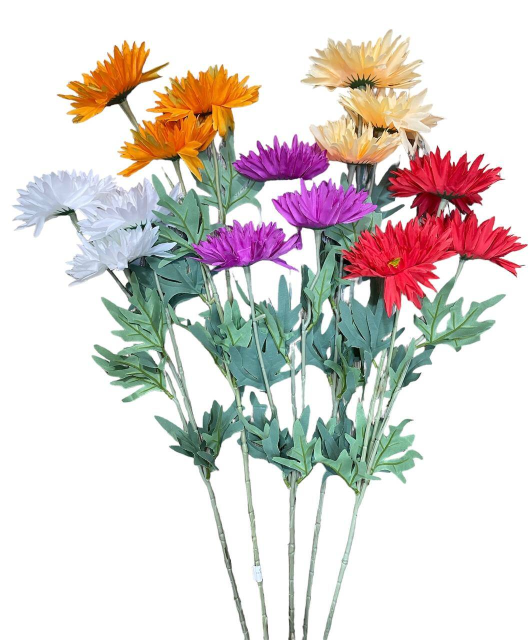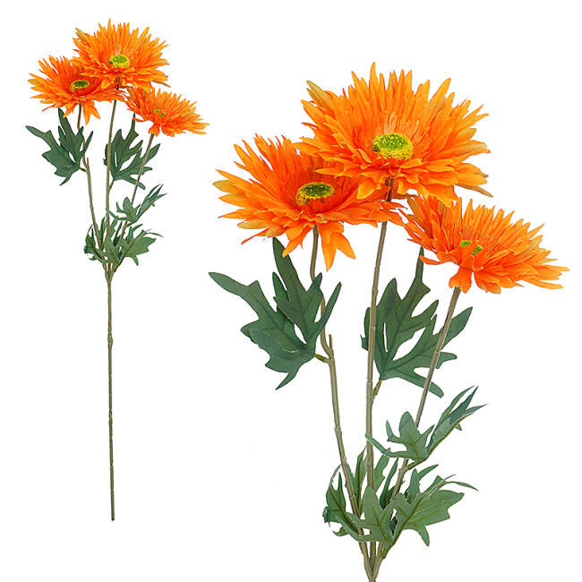 Гілка Гербера штучна на 3 голови з листочками. Висота гілки 76 см.