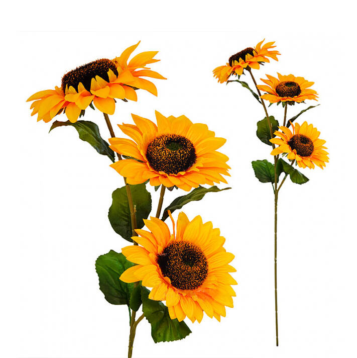Штучна гілка соняшнику на 3 голови. Висота гілки 87 см. Три голівки