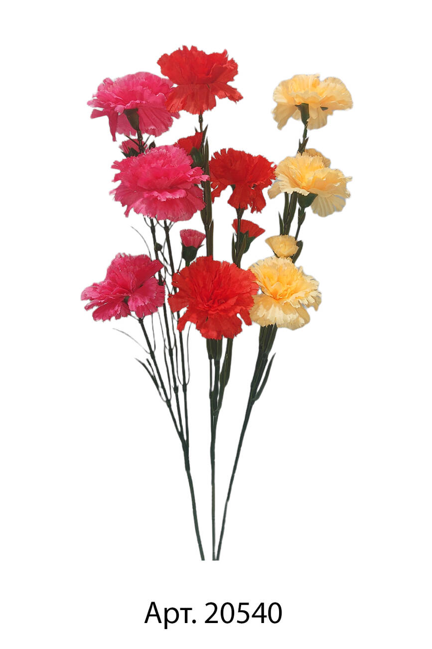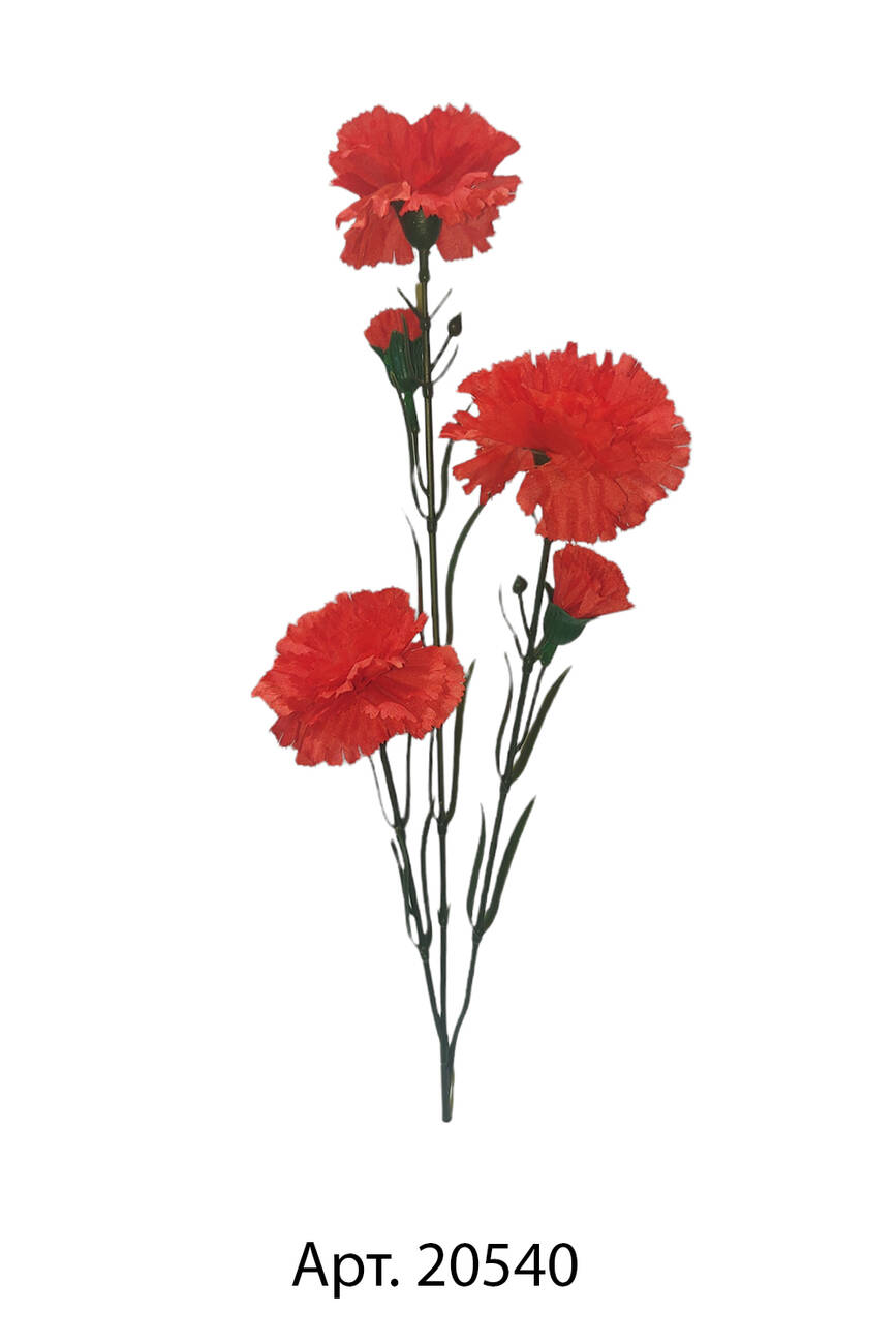 Одиночна штучна квітка гвоздика потрійна шовк на 5 г 65 см 10шт в уп