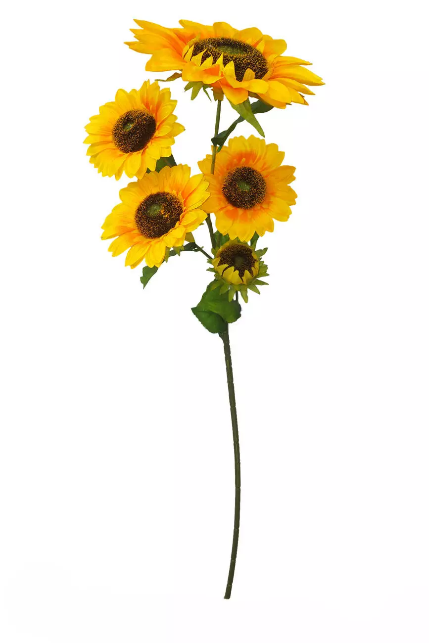 Штучна гілка соняшнику на 5 голів. Матеріал шовк. Висота гілки 106
