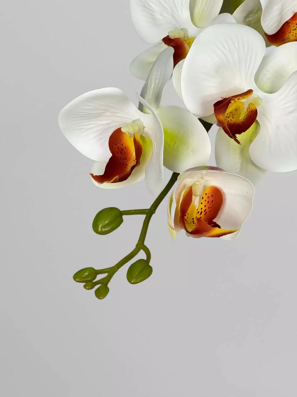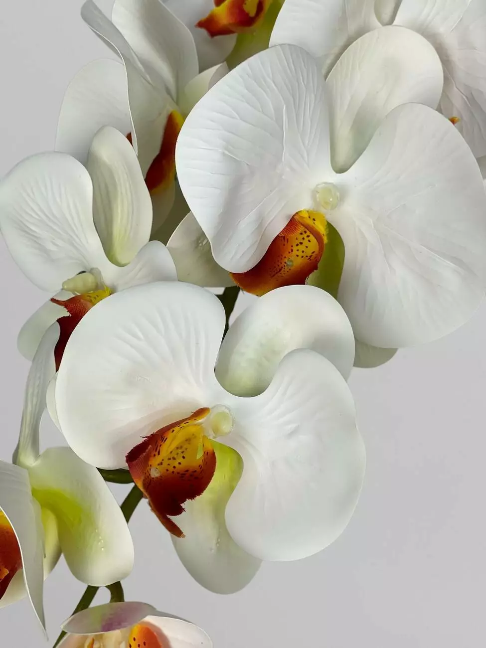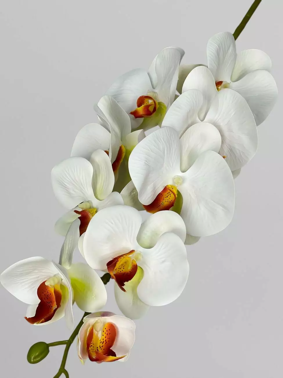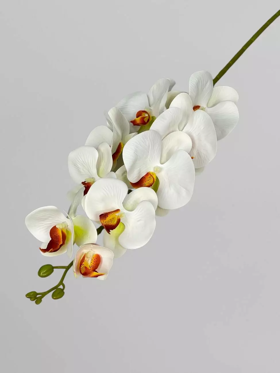 Орхідея декоративна латексна на 9 суцвіть, білий з помаранчевою серединкою, 95 см