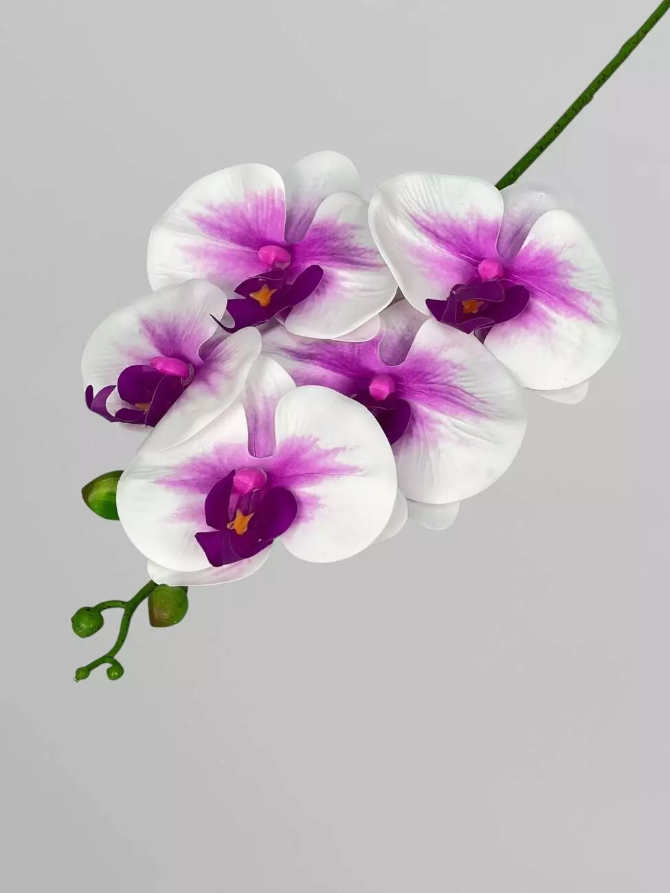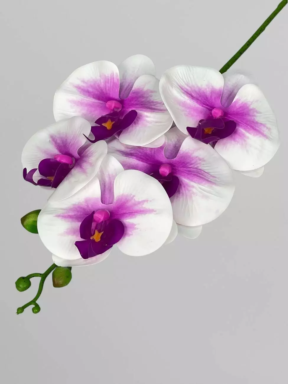 Орхідея Фаленопсіс на 5 суцвіть, білий з фуксійною серединкою, 70 см