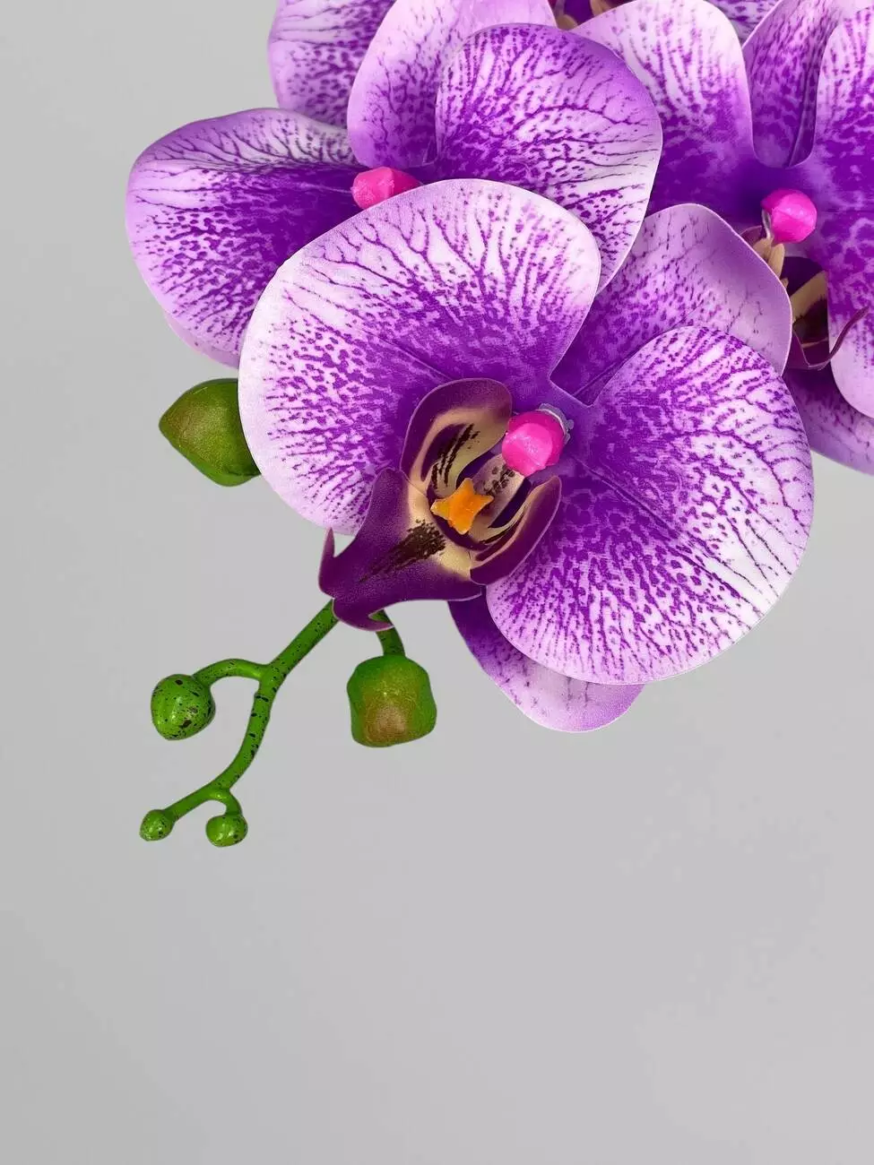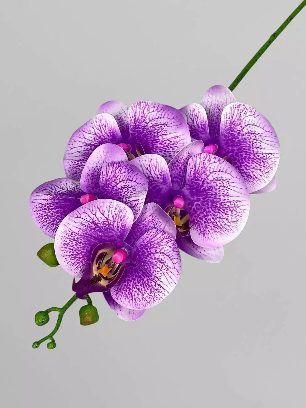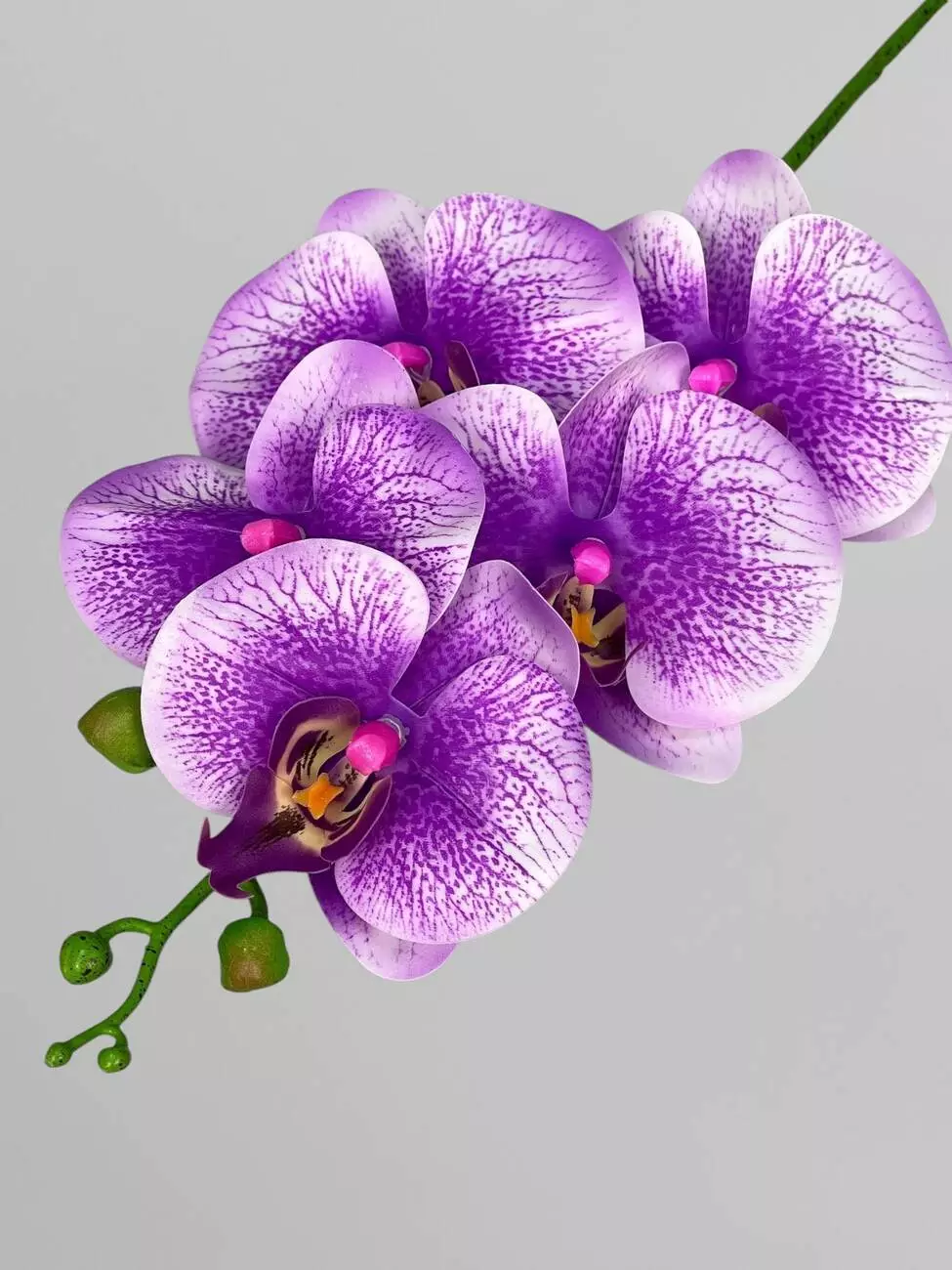 Орхідея Фаленопсіс на 5 суцвіть, ніжно-фіолетовий з принтом, 70 см