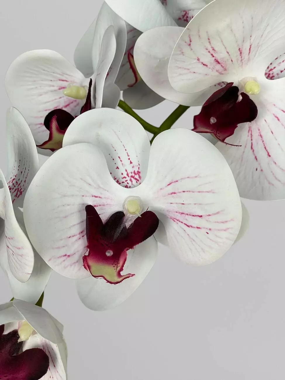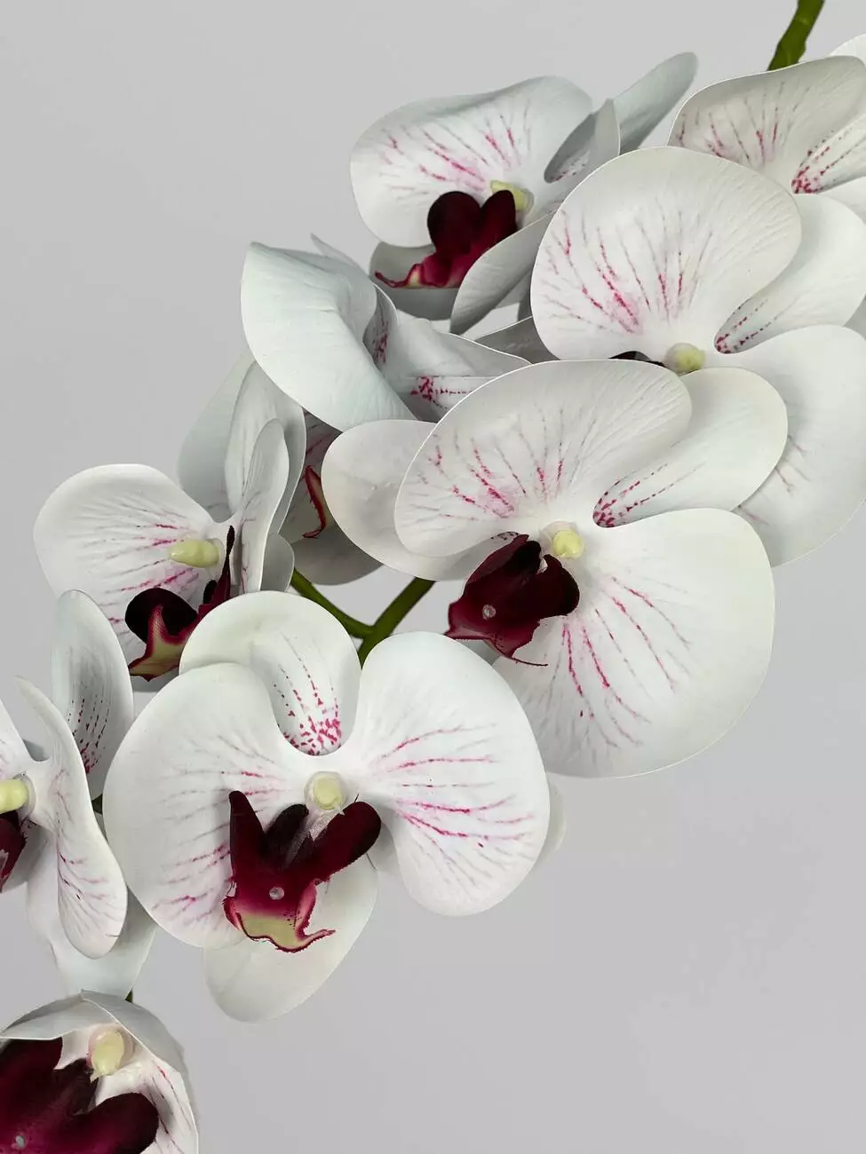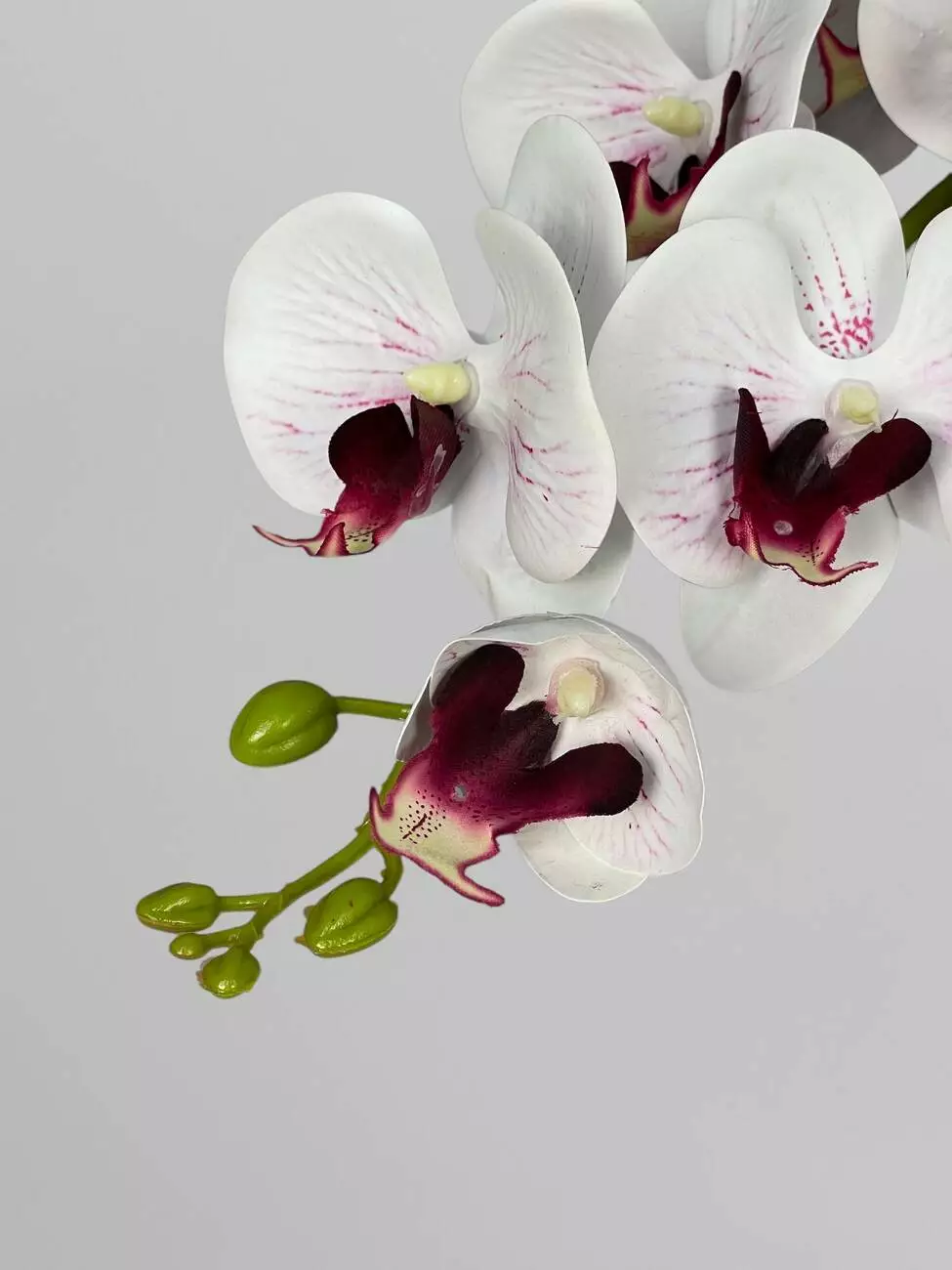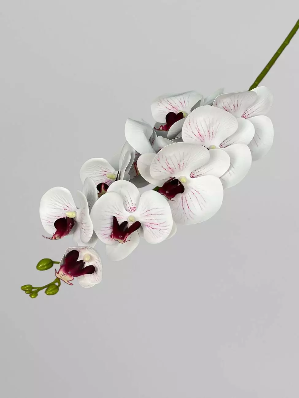 Орхідея штучна на 9 суцвіть, білий з бордовою серединкою, 95 см