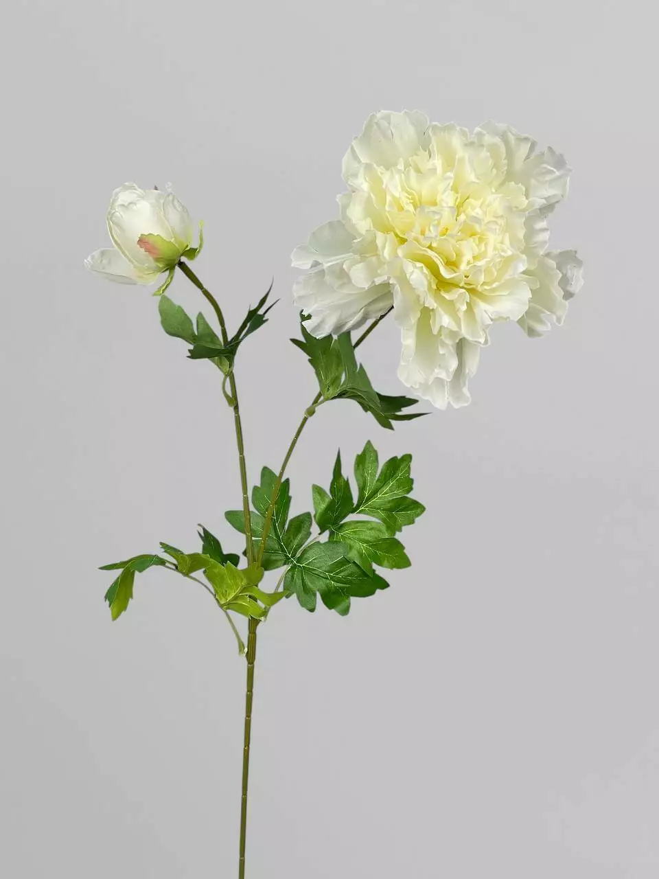 Півонія на стеблі 1+1, сатин, білий, 84 см