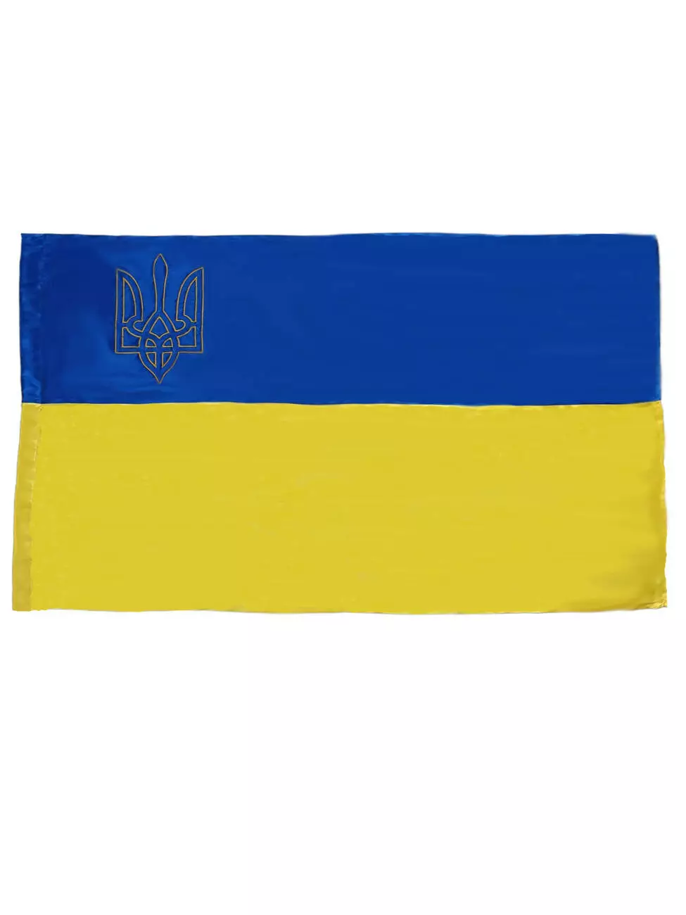 Прапор України жовто-синій з атласу з гербом, розмір 100*150 см.