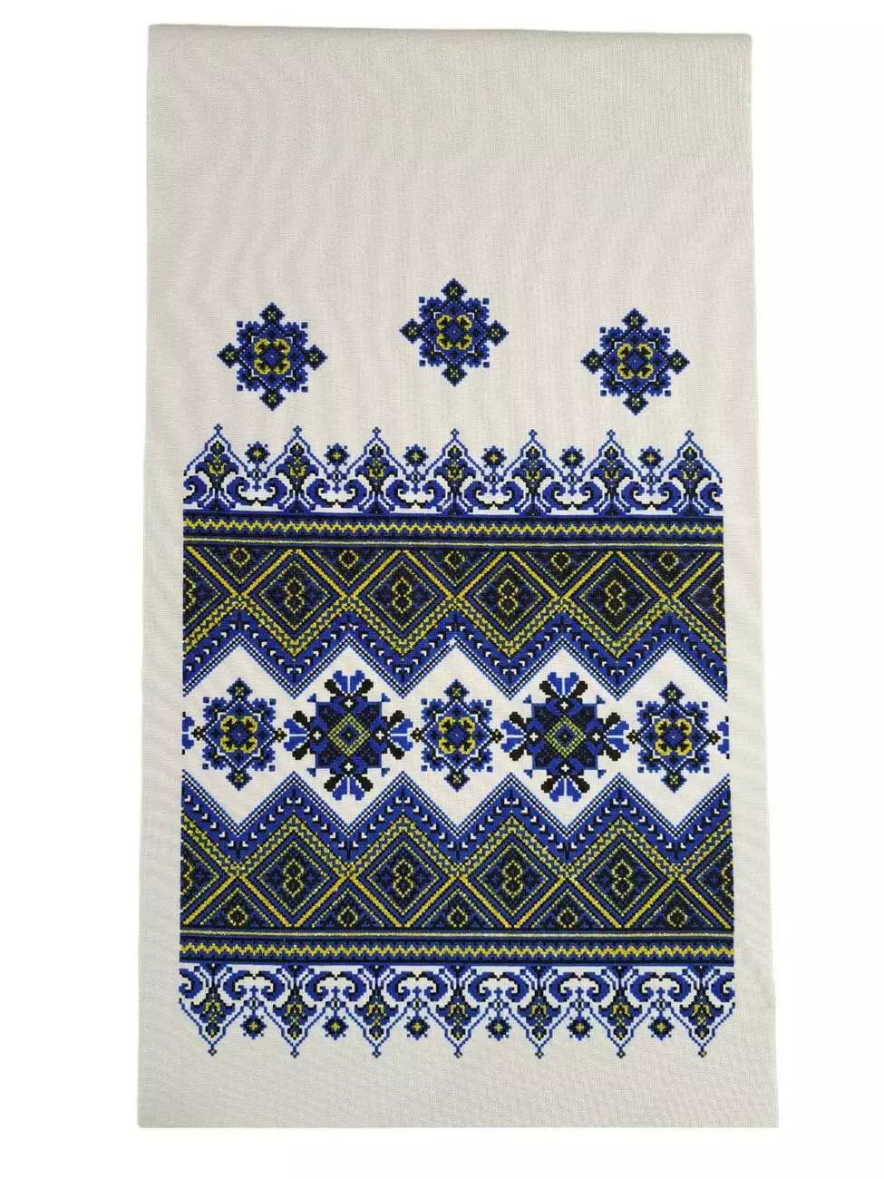 Рушник ритуальний габардин орнамент 30*150 см 10 шт, синій на білому