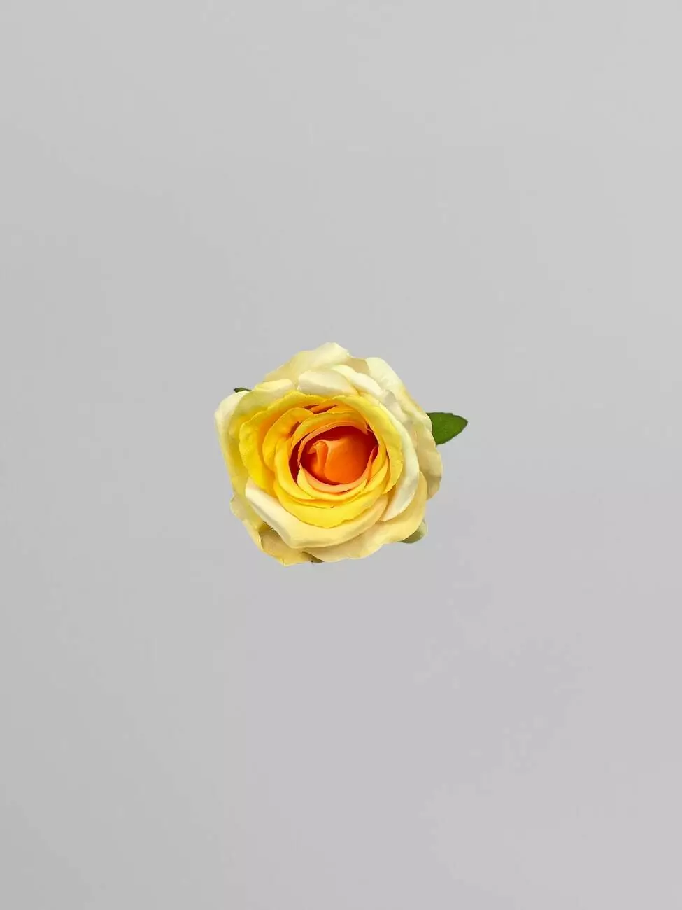 Сатинова штучна троянда, голівка без стебла, жовтий, 10 см