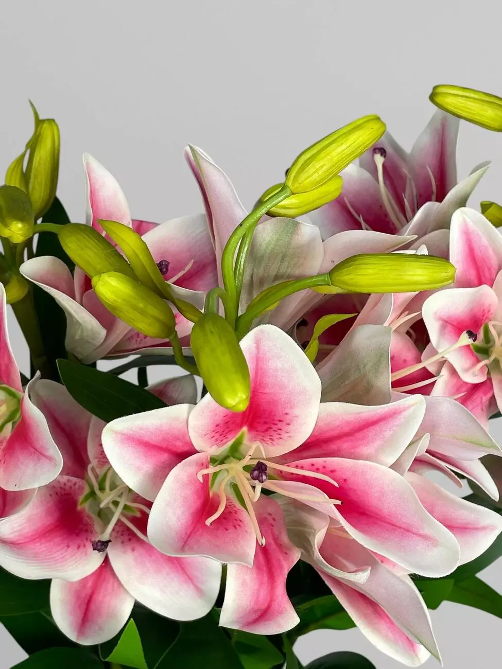 Штучна декоративна гілка лілій 5 бутонів, яскраво-рожевий, 75 см