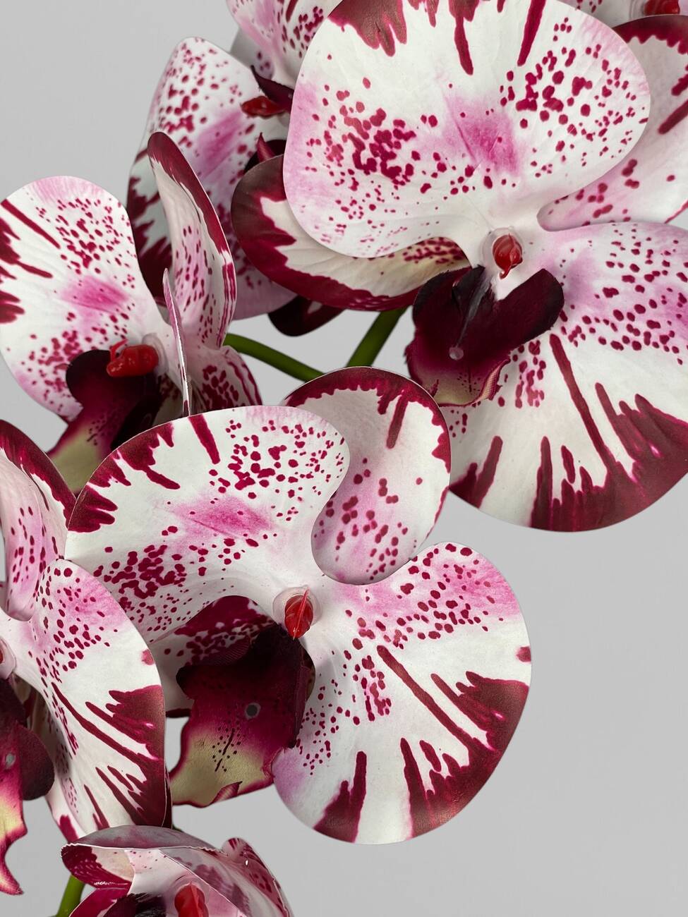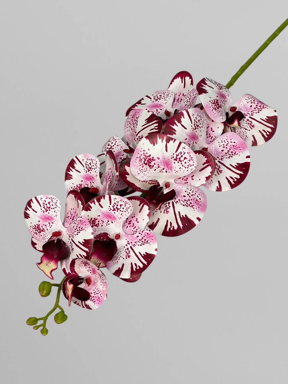Штучна гілка квітів орхідеї на 9 суцвіть, біло-бордовий, 95 см