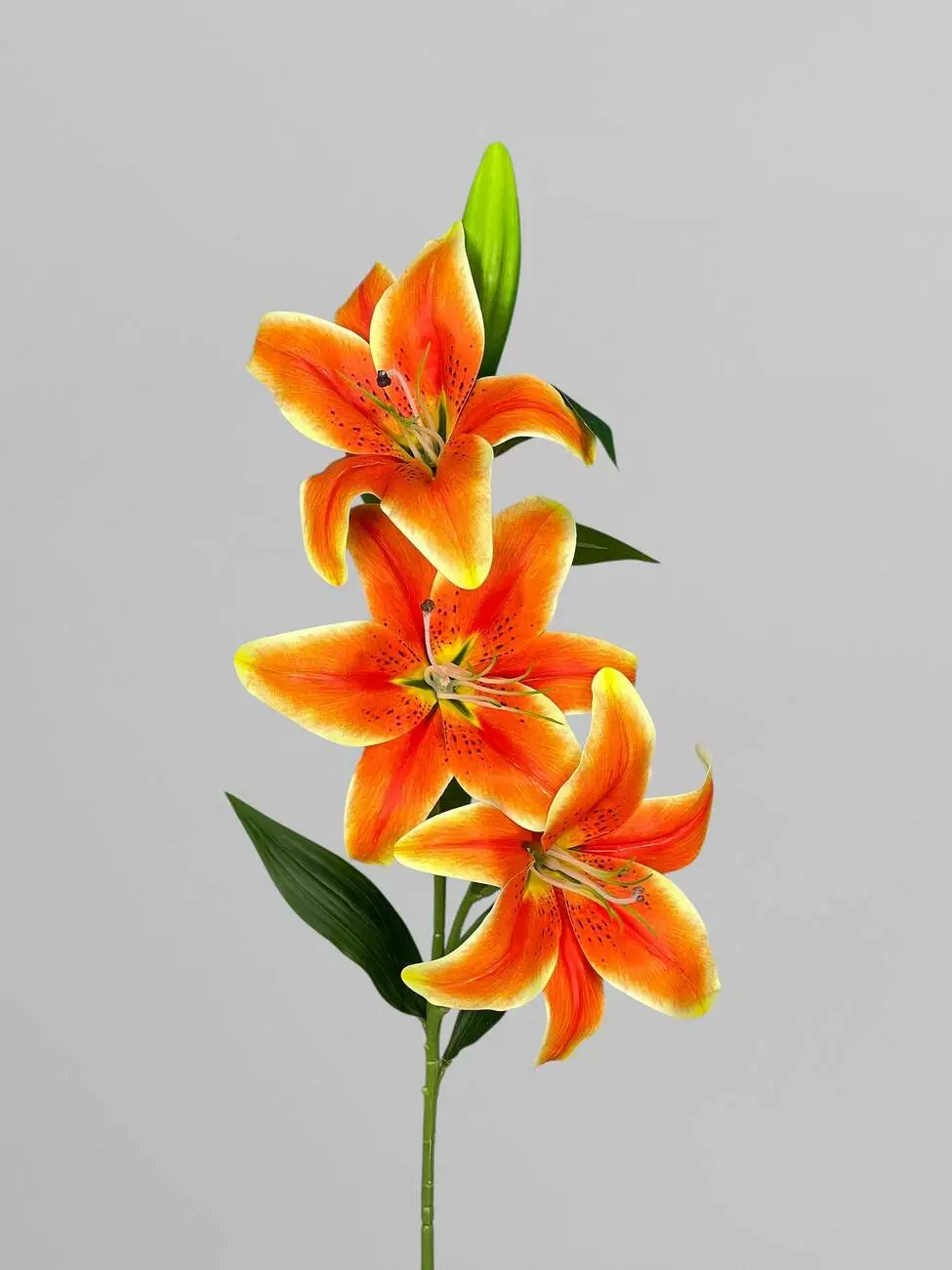 Штучна гілка лілій на 3 суцвіття, помаранчевий, 95 см