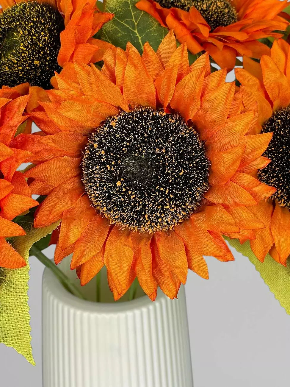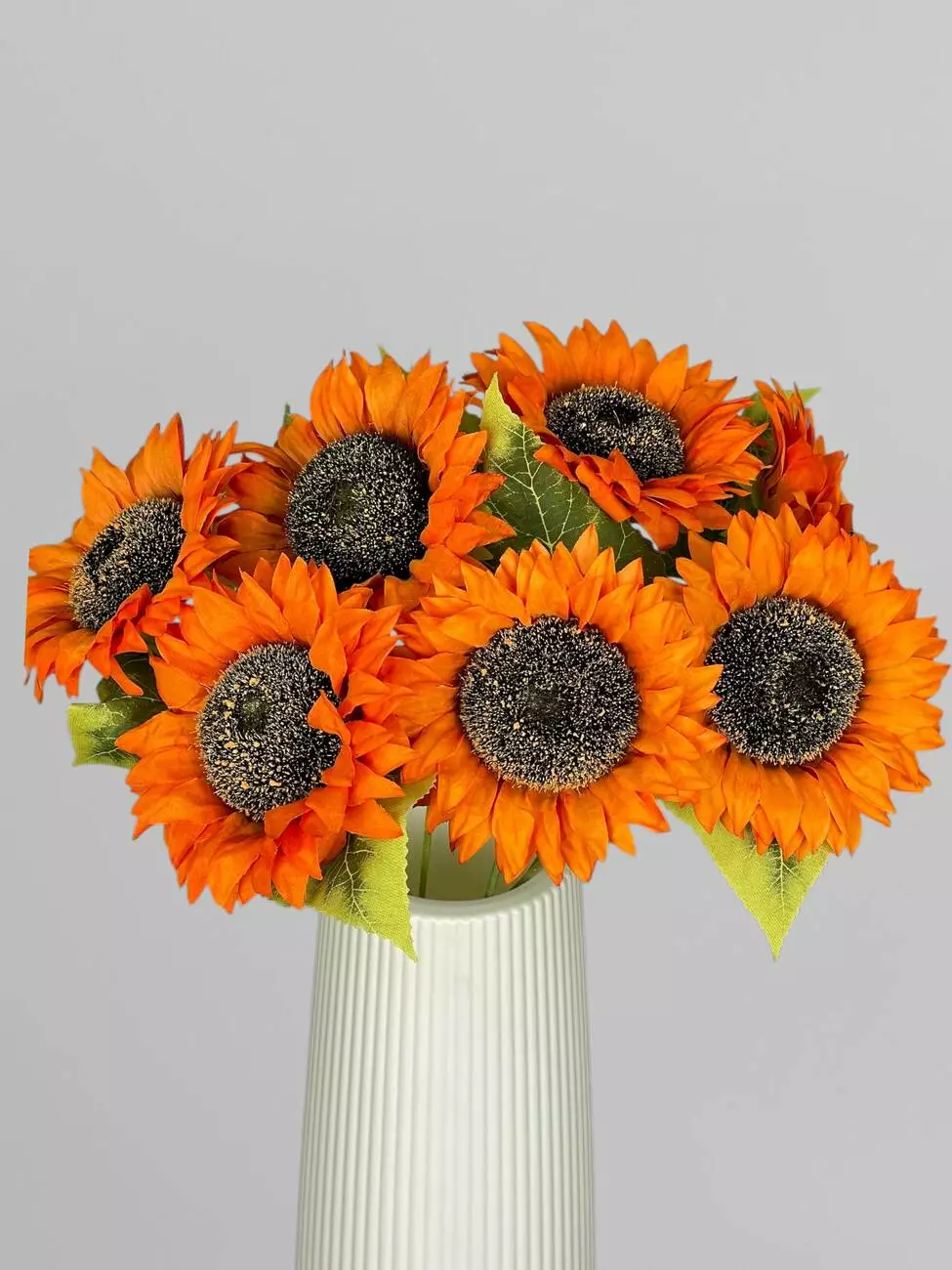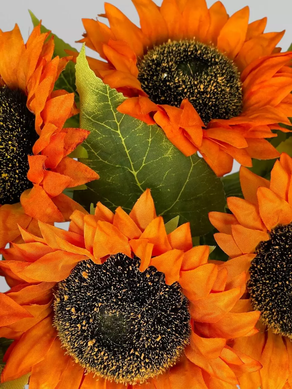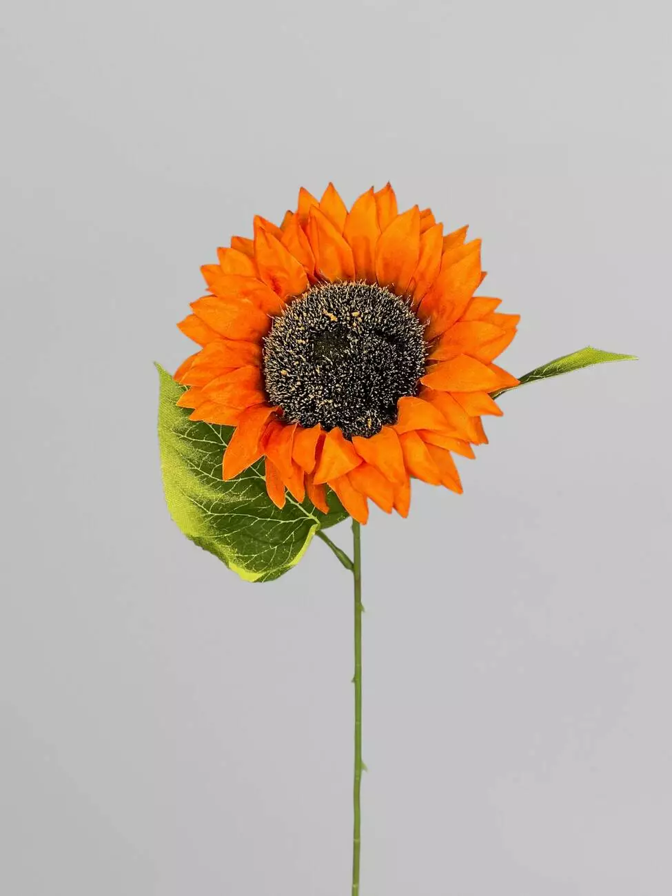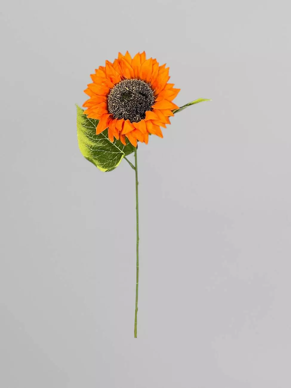 Штучна гілка соняшника з листям, помаранчевий, діаметр 12 см, висота 48 см