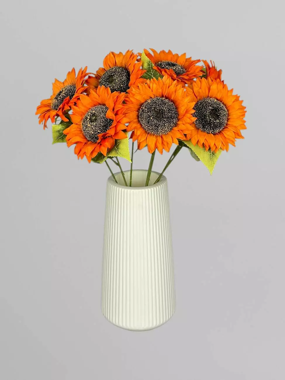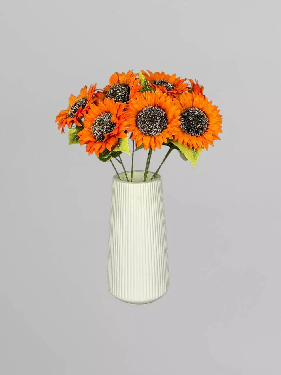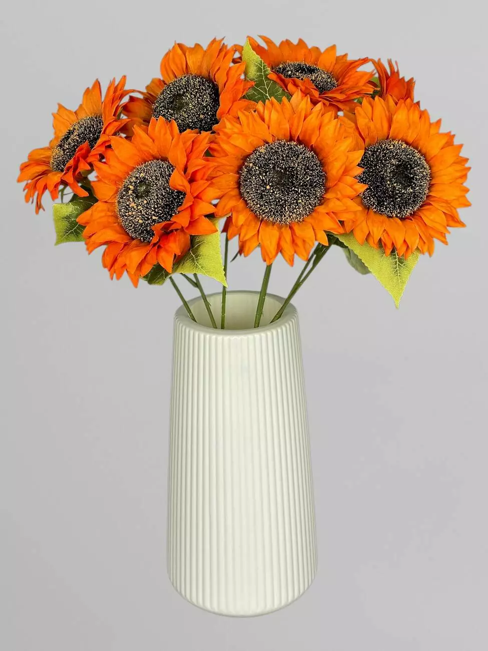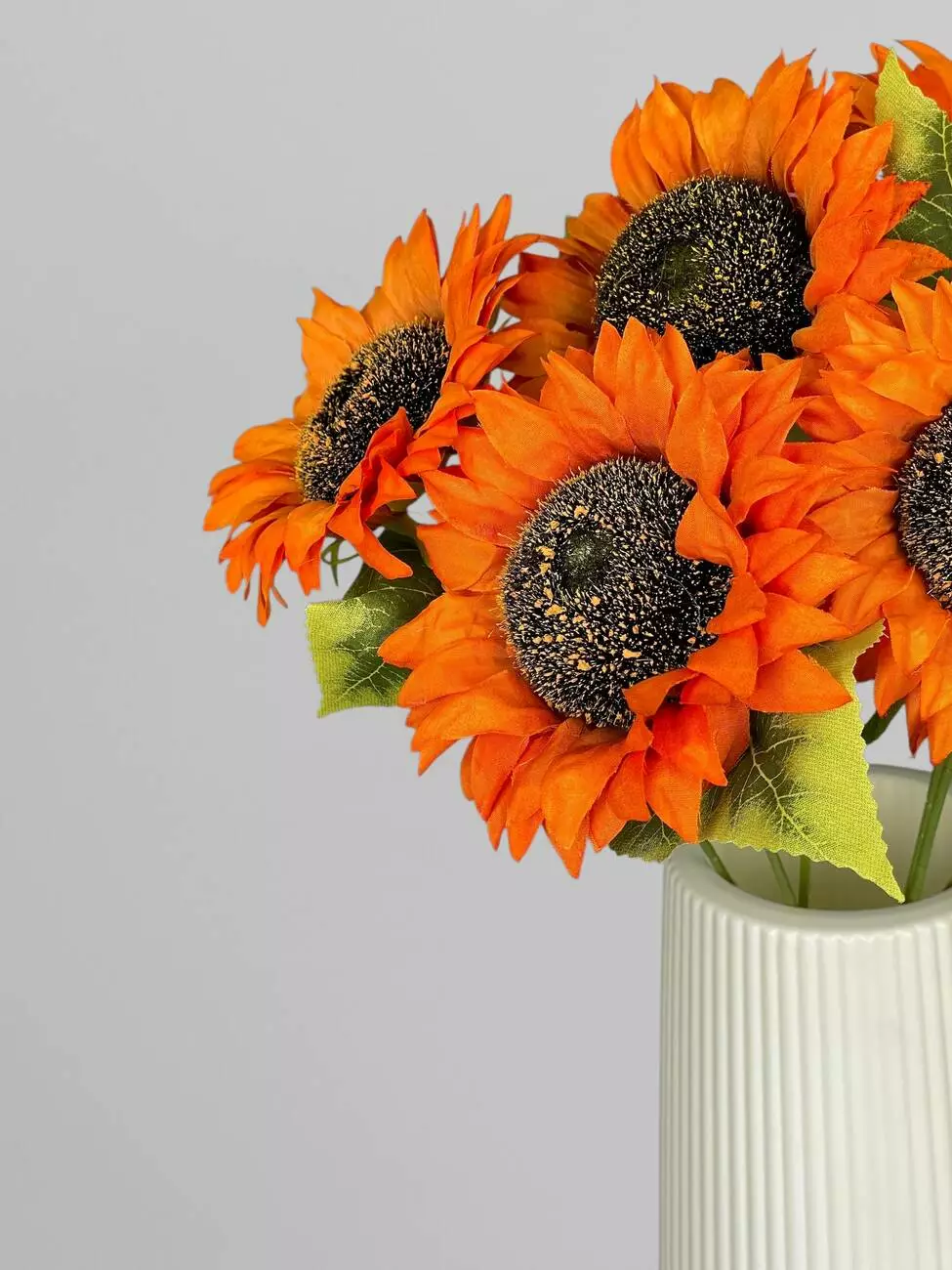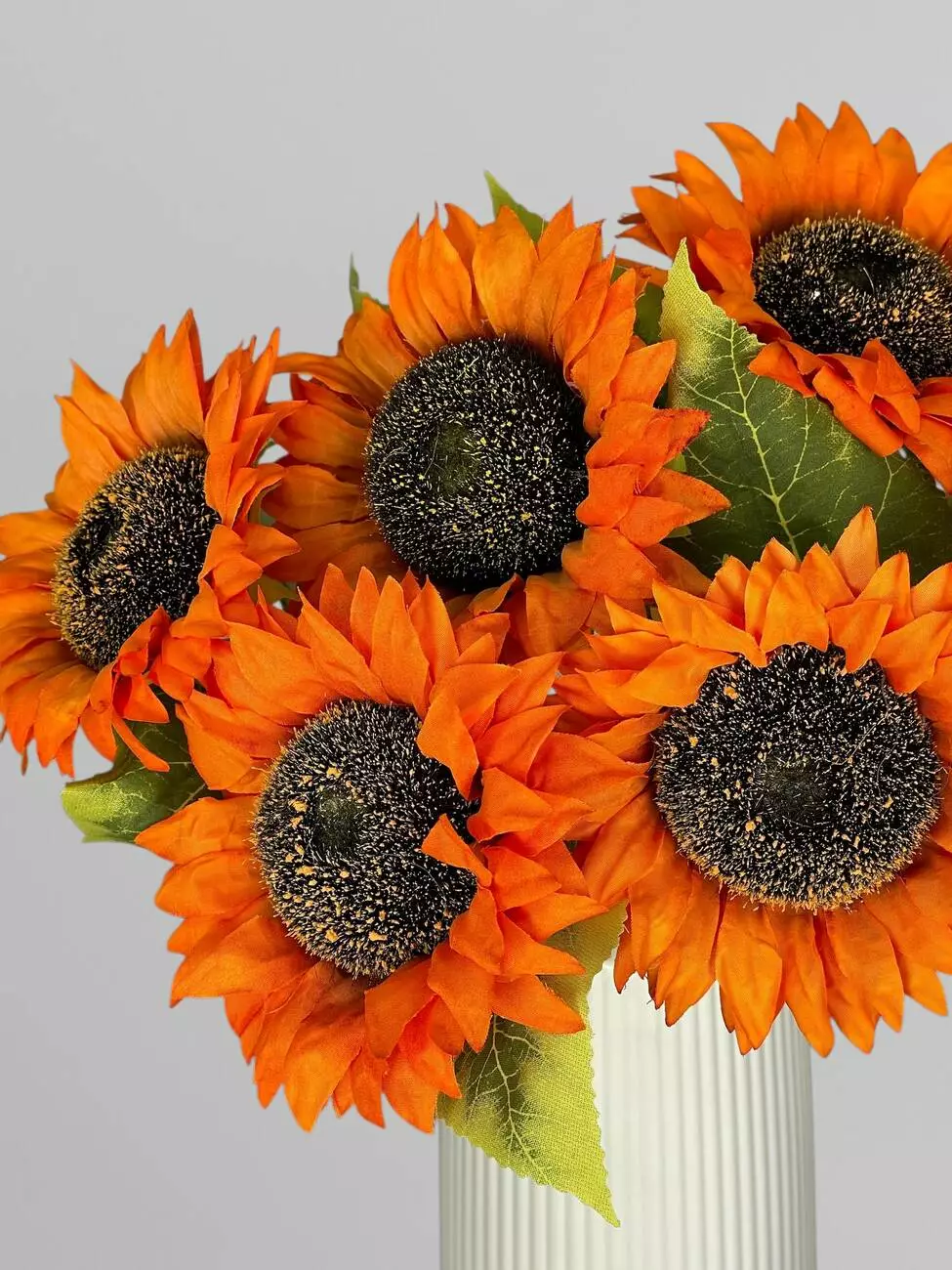 Штучна гілка соняшника з листям, помаранчевий, діаметр 12 см, висота 48 см