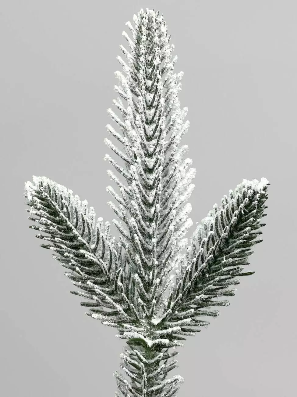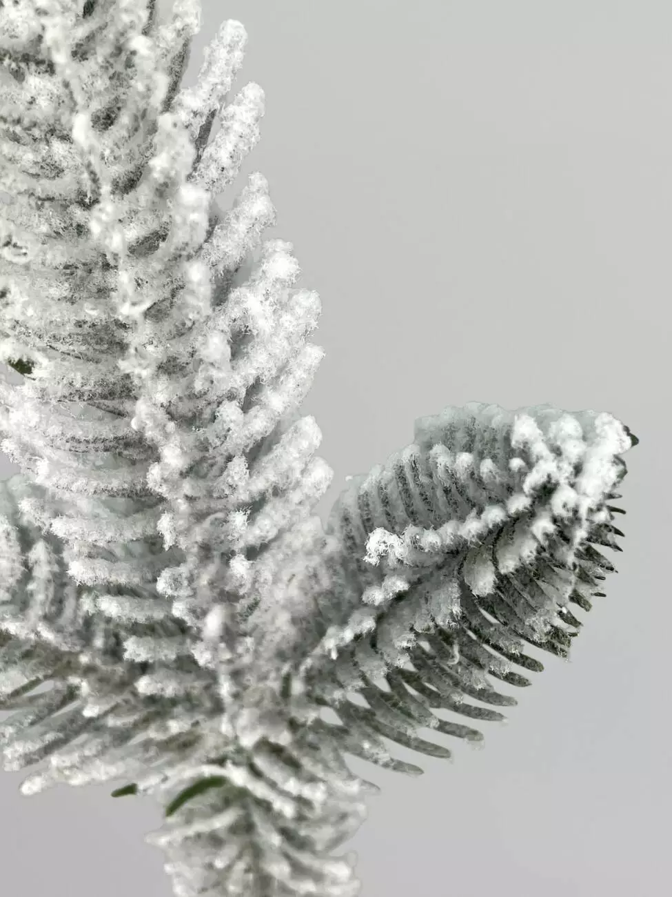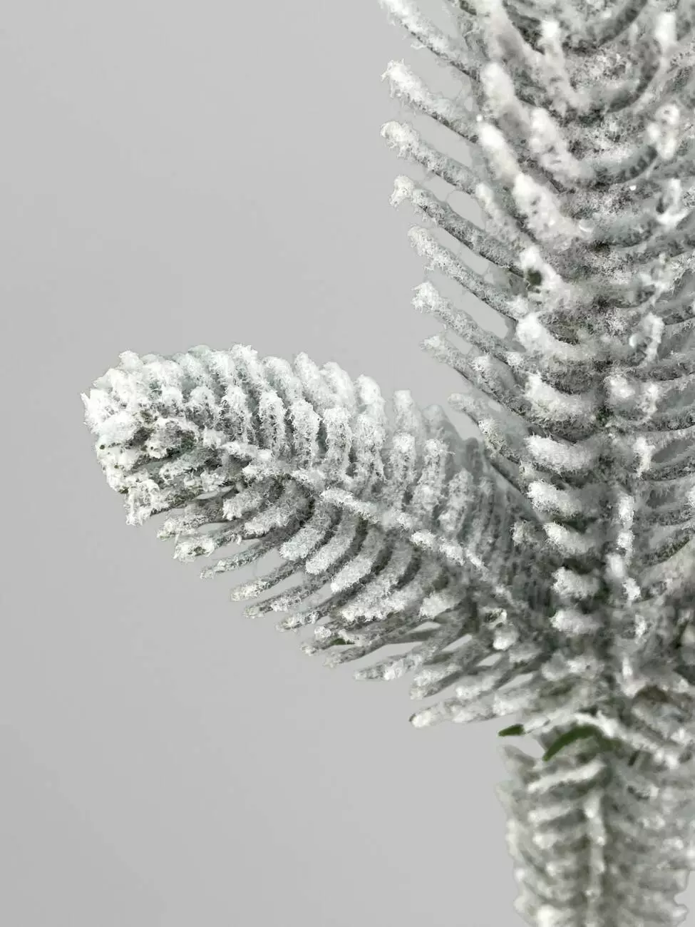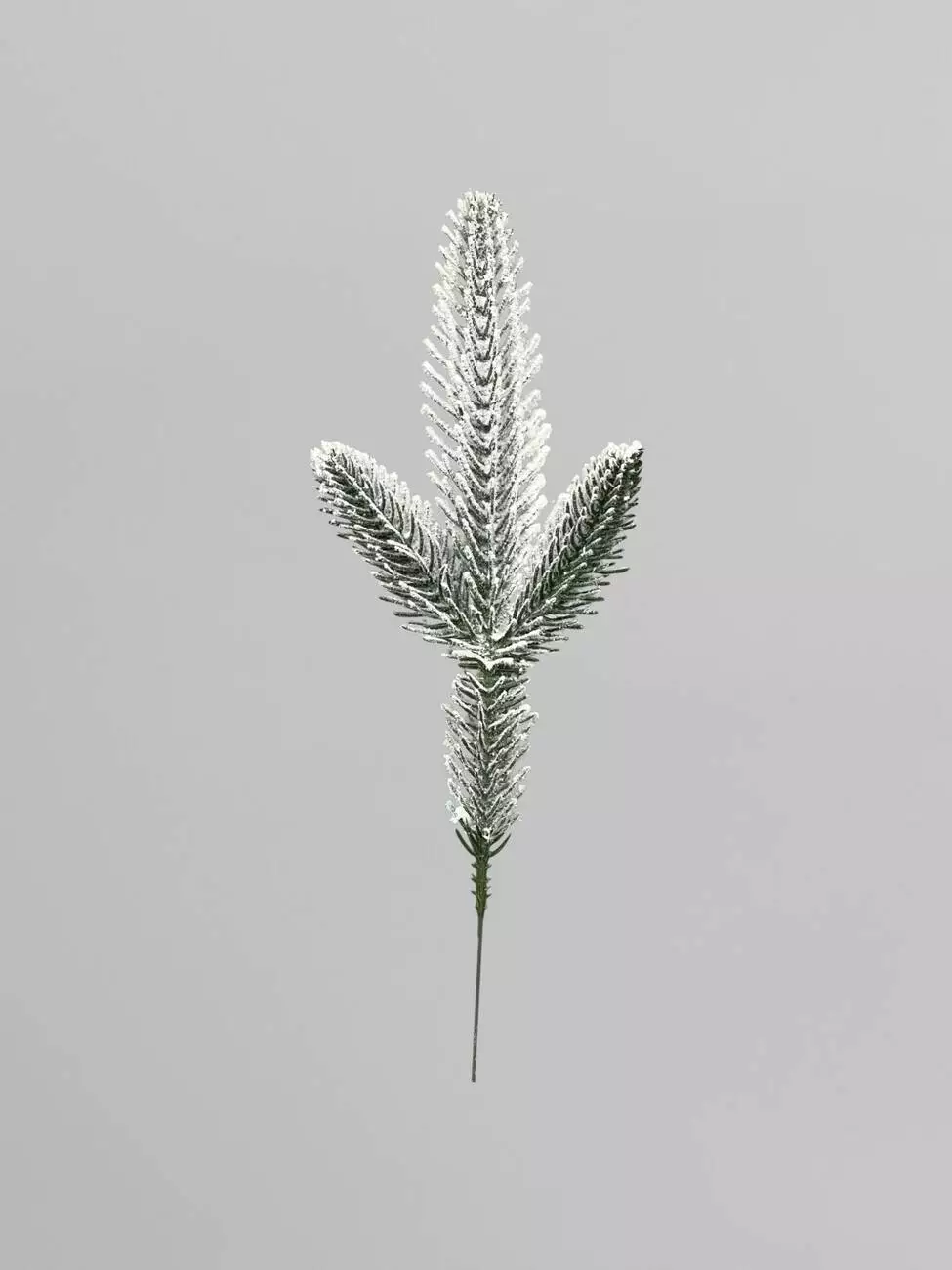 Штучна хвойна гілка з короткими голками засніжена, зелений, 27 см