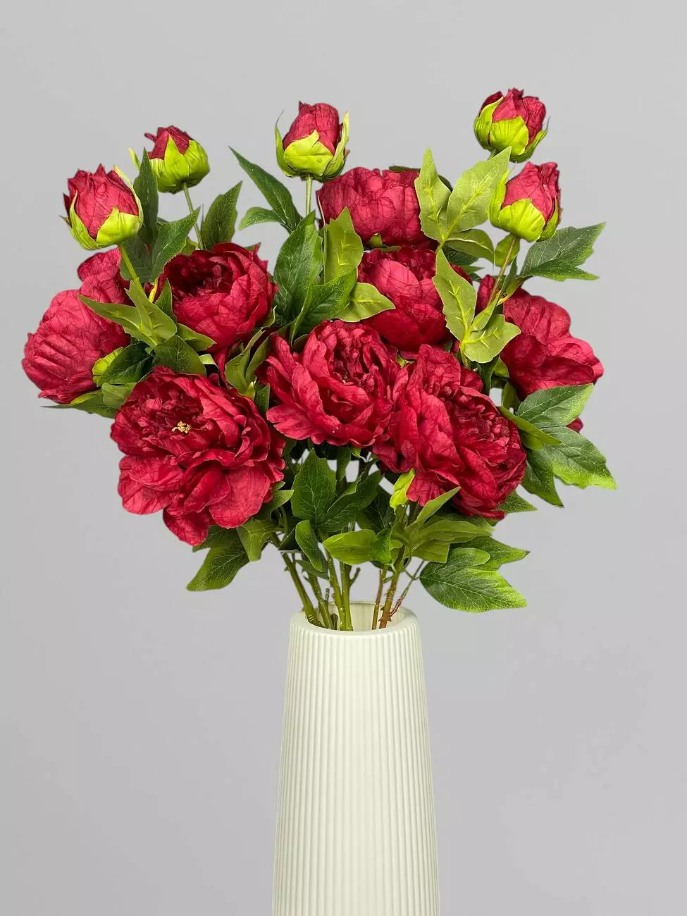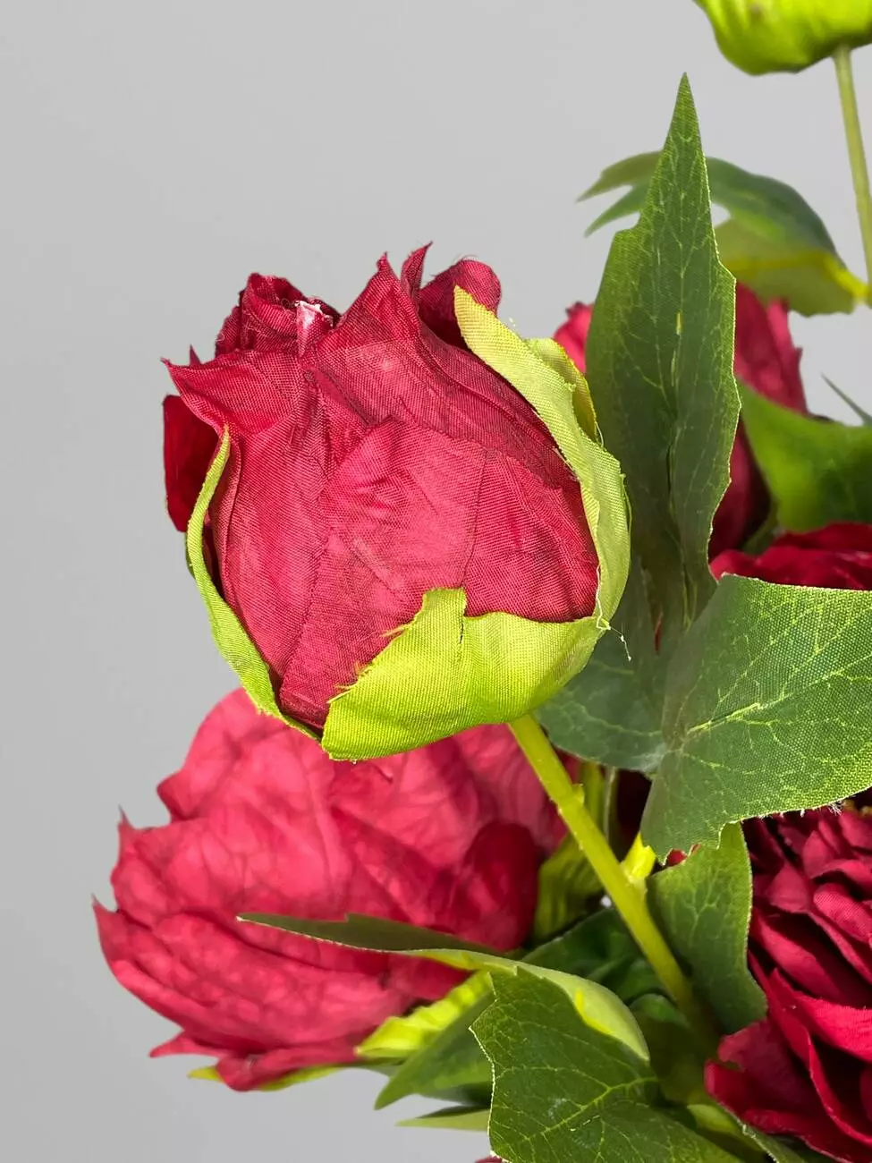 Штучна квітка піоновидна троянда на стеблі для декору, бордовий, 85 см