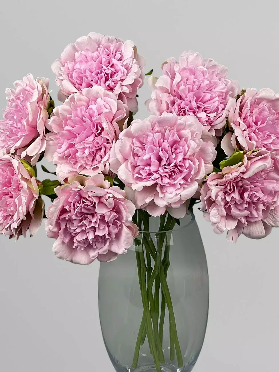 Штучна махрова півонія на стеблі, ніжно-рожевий, 59 см