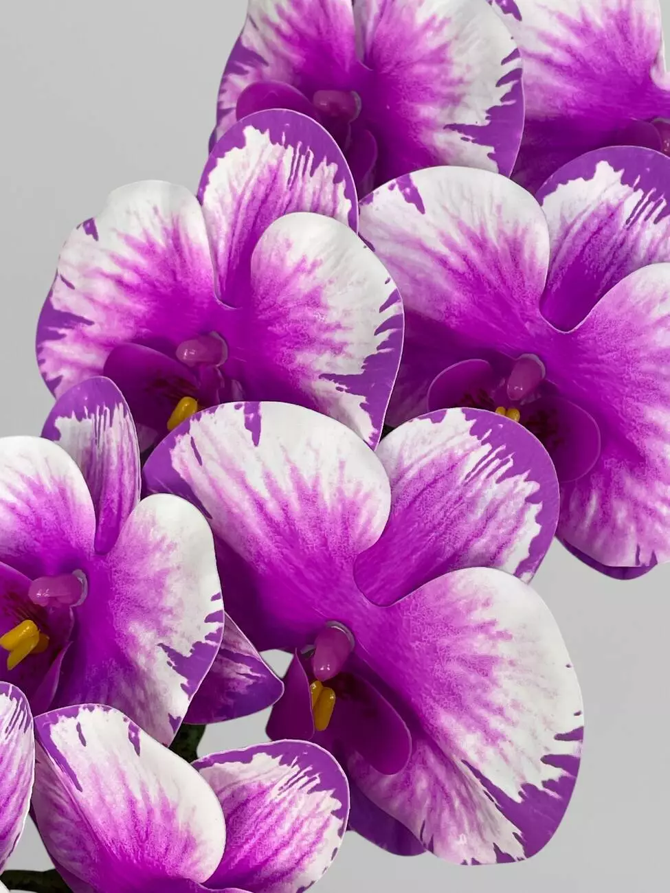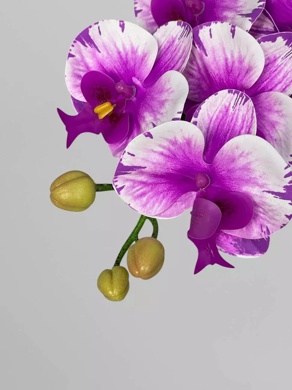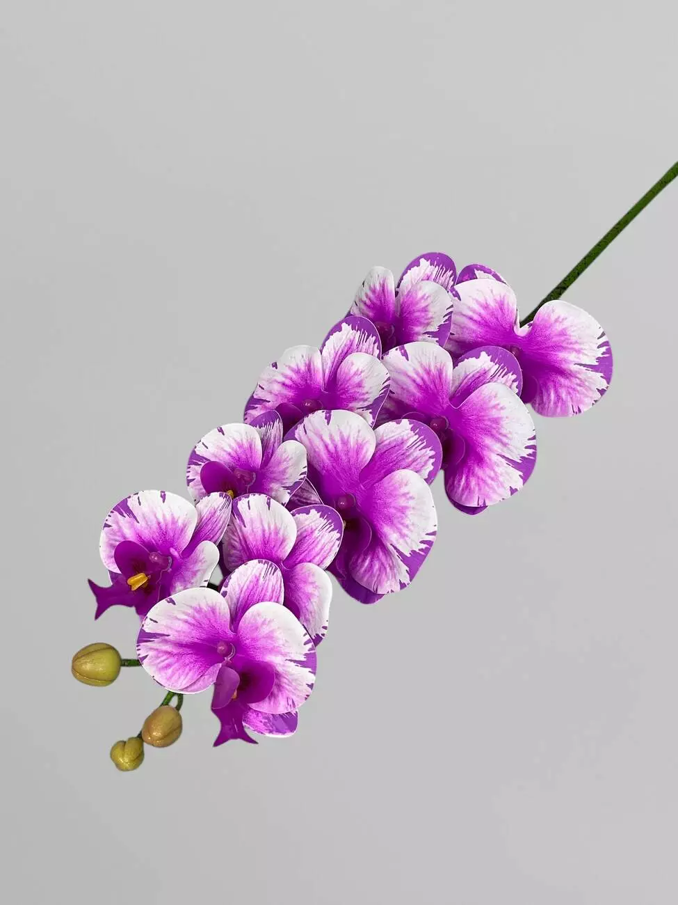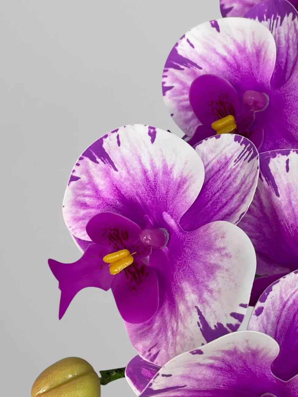 Штучна орхідея Фаленопсис 9 суцвіть, біло-фіолетовий, 95 см