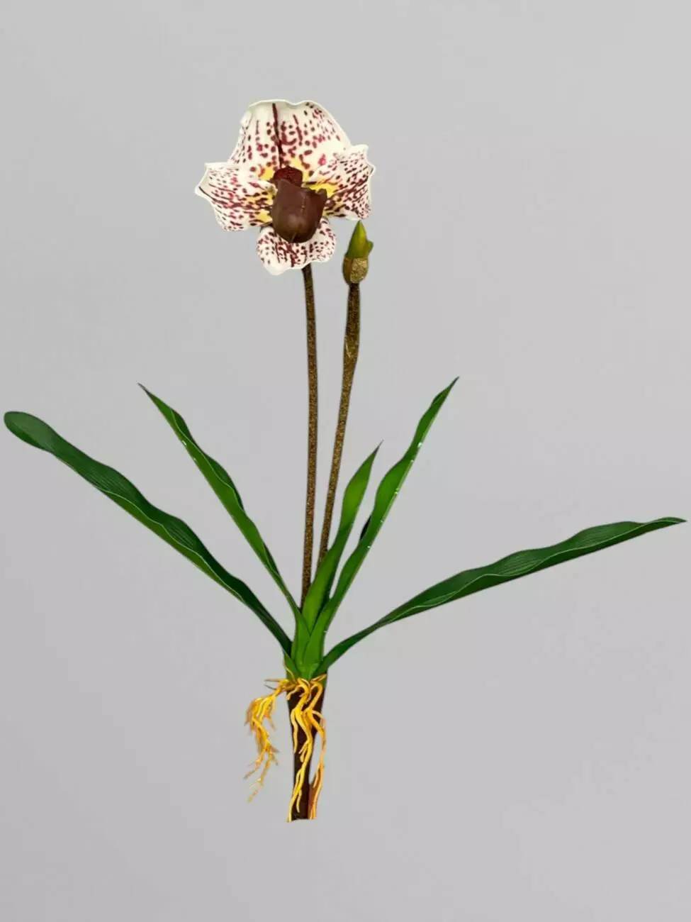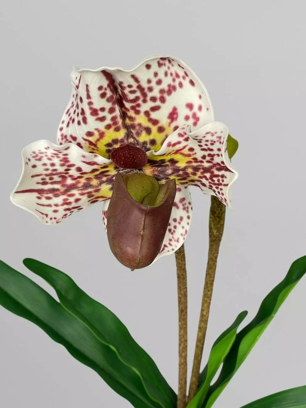 Штучна орхідея пафіпеодилум мауді, білий у жовту точку, 48 см