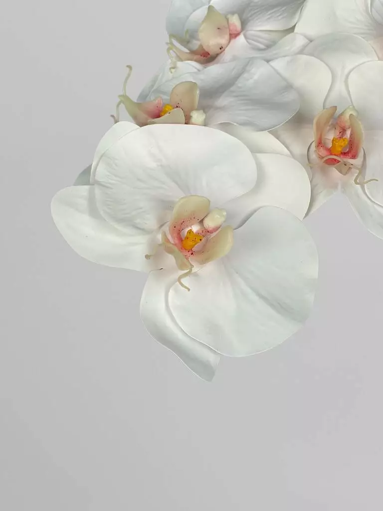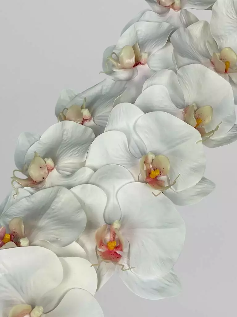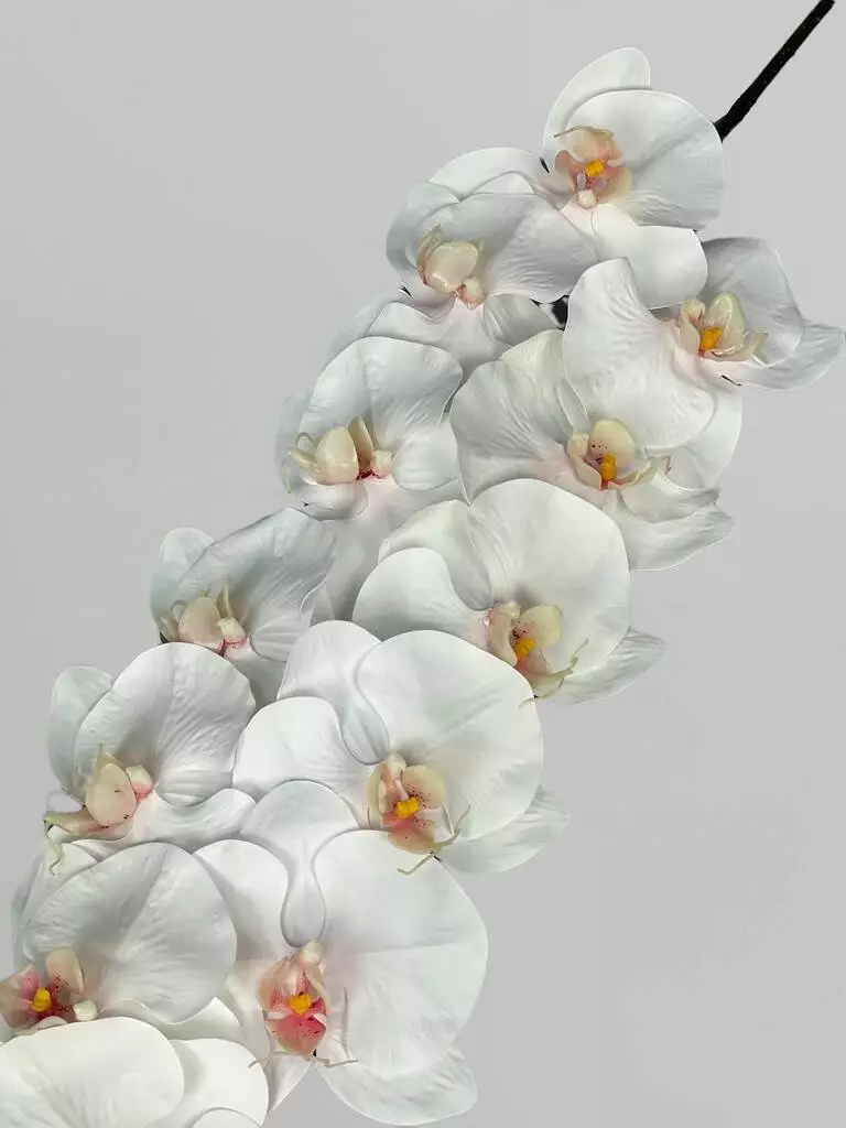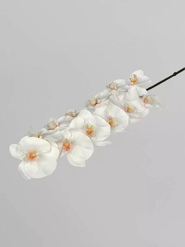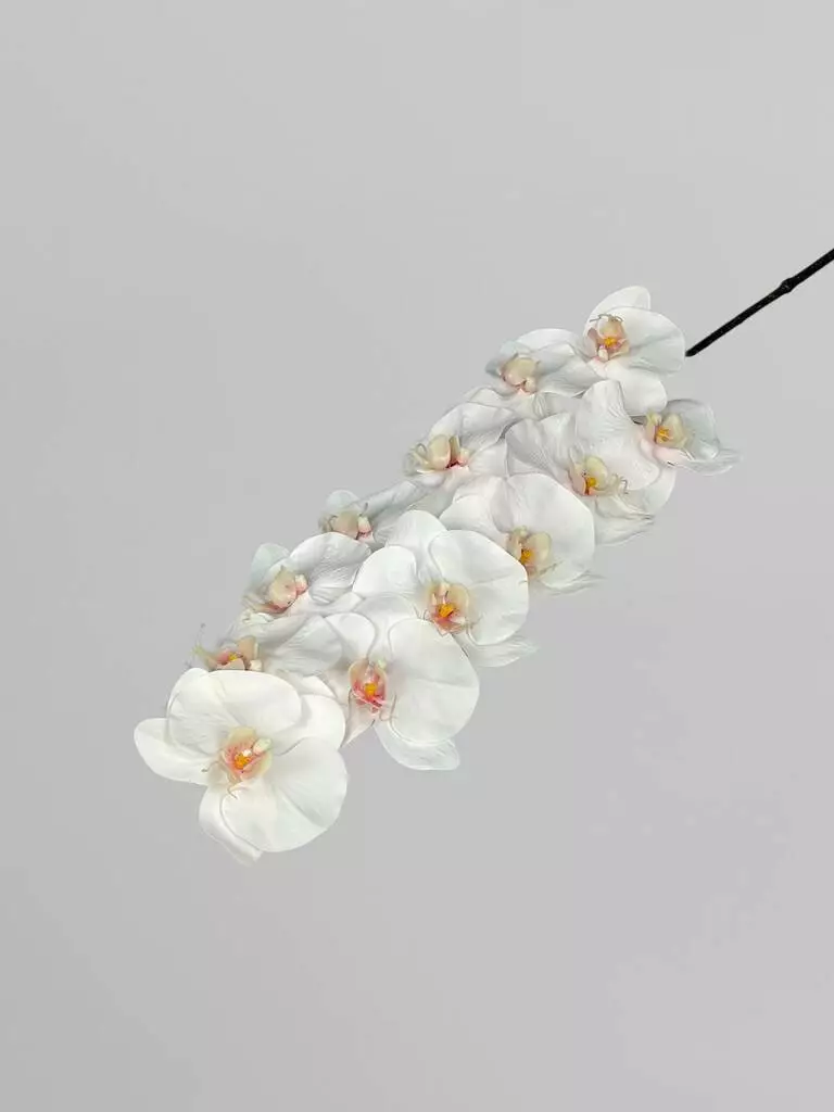 Штучна орхідея Real touch, 12 суцвіть, білий з яскравою серединкою, 107 см