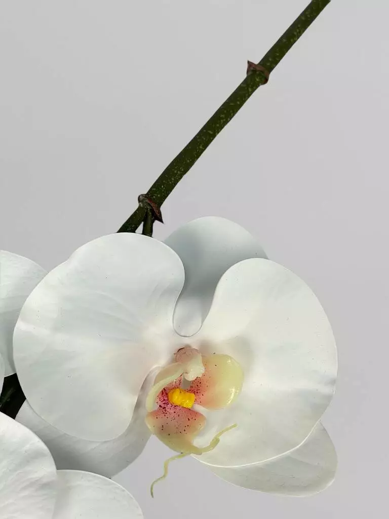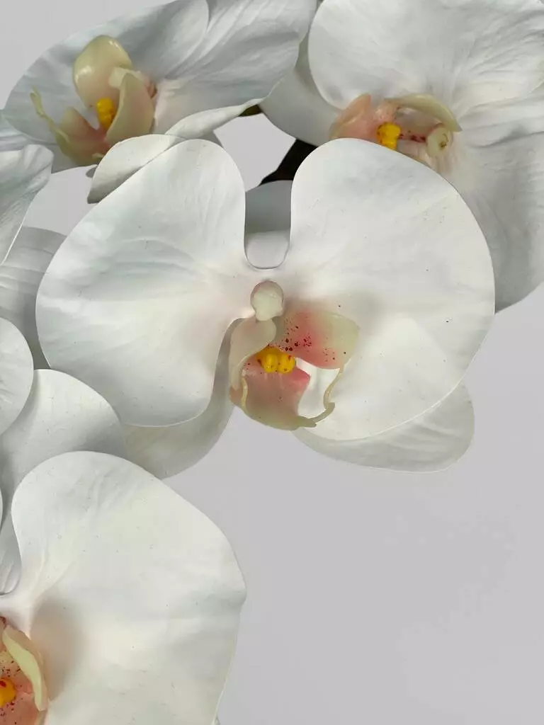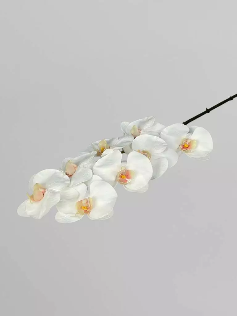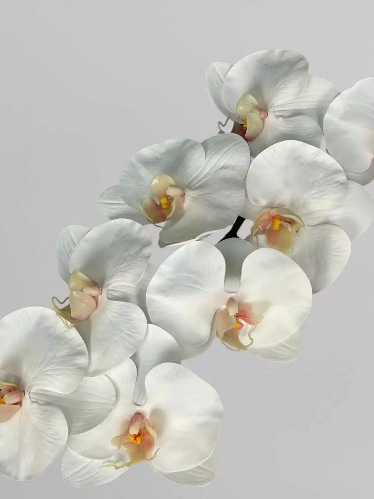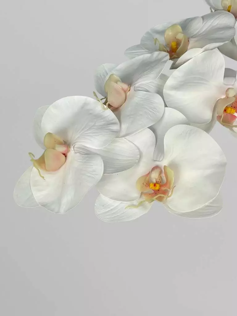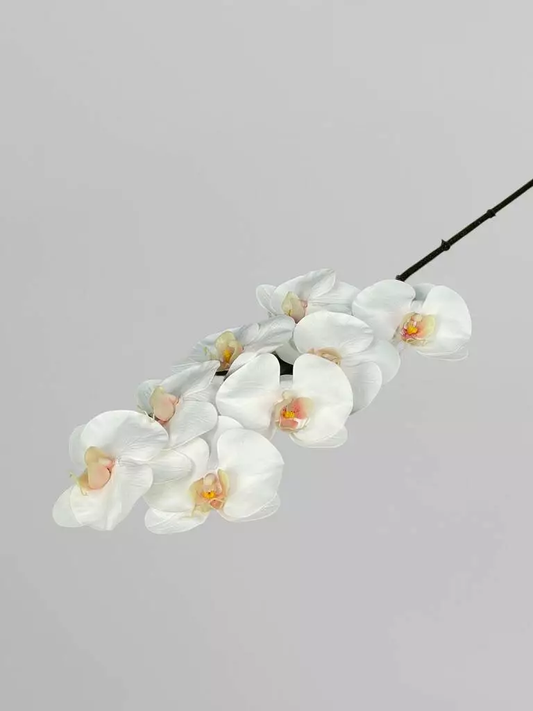 Штучна орхідея Real touch, 8 суцвіть, білий з яскравою серединкою, 80 см