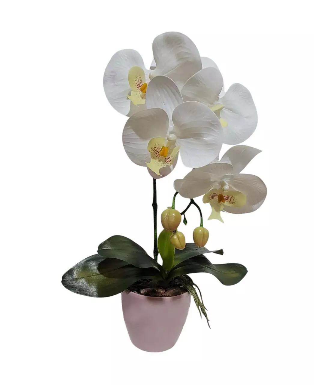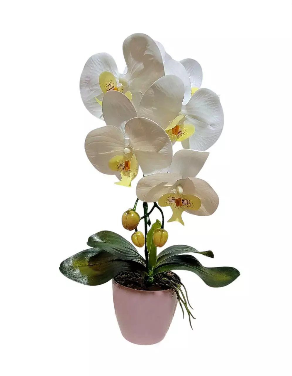 Штучна орхідея в горщику одинарна на 5 суцвіть біла 42*16см