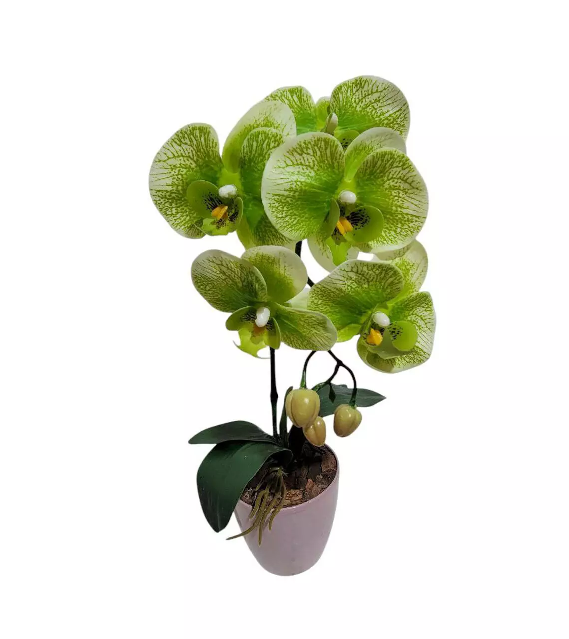 Штучна орхідея в горщику одинарна на 5 суцвіть зелена 42*16см