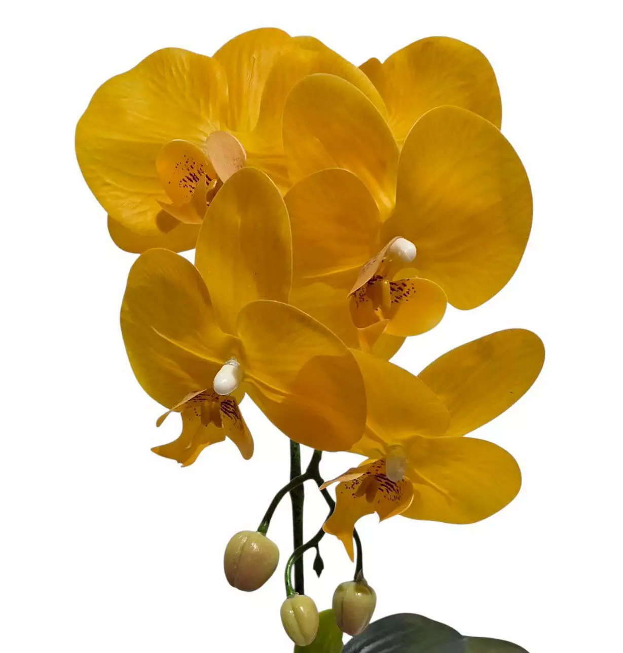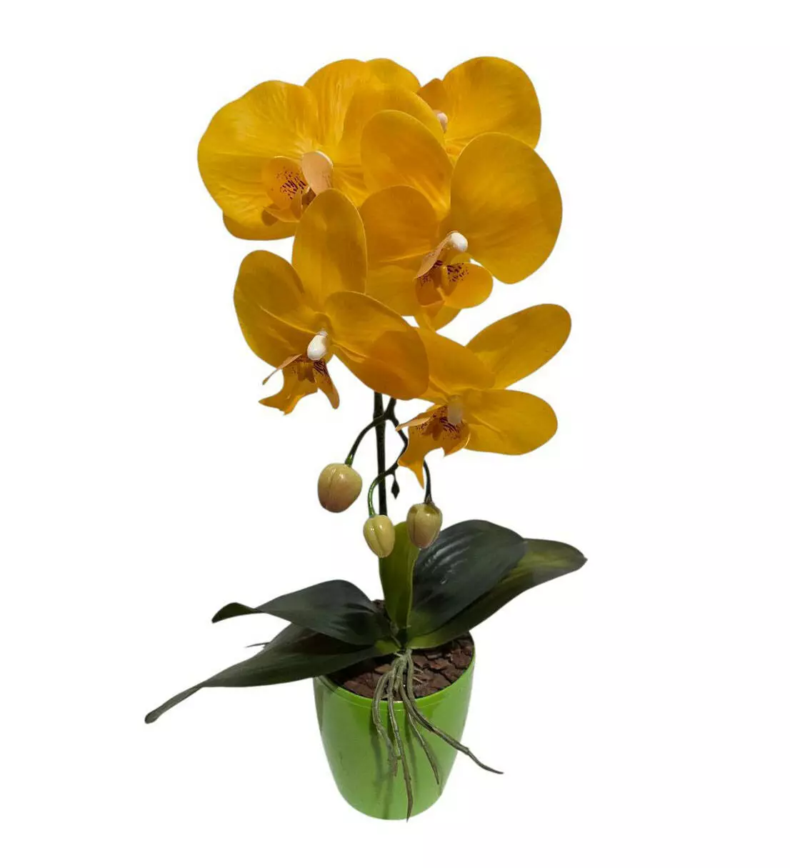 Штучна орхідея в горщику одинарна на 5 суцвіть жовта 42*16см