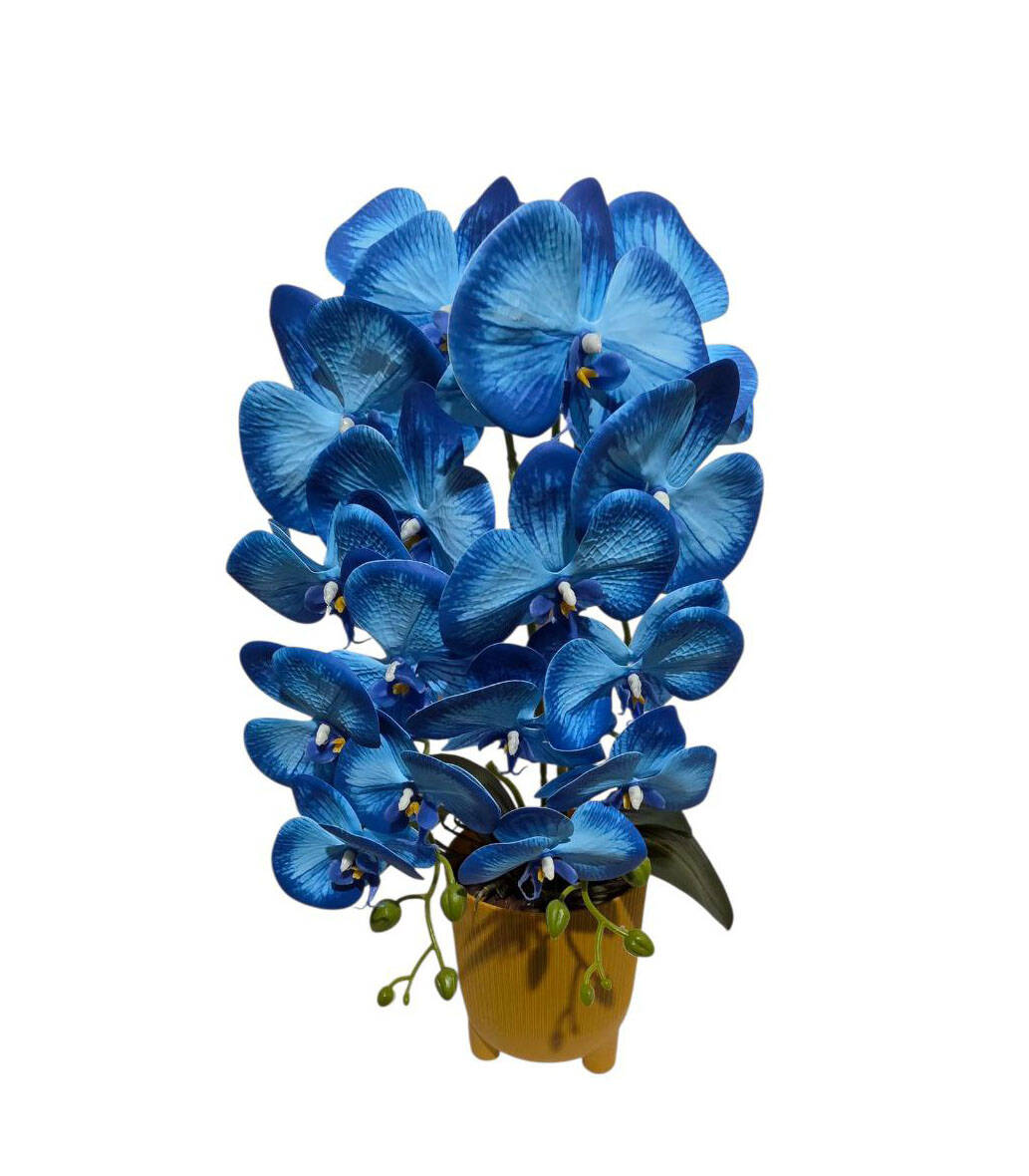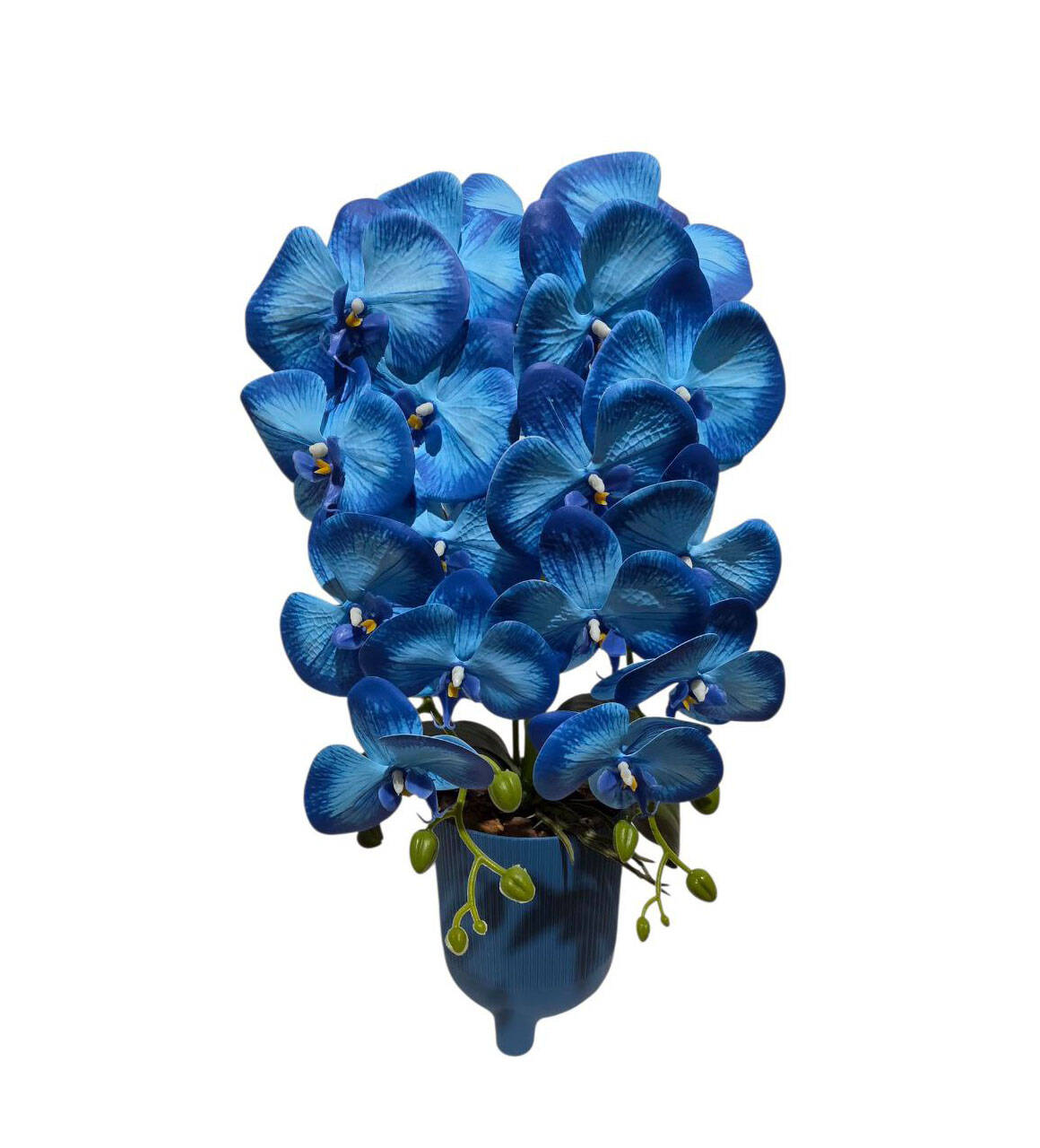 Штучна орхідея в горщику подвійна синя на 9 суцвіть 54*24см