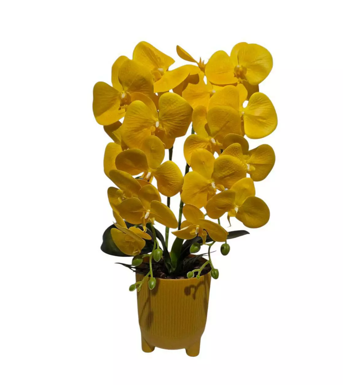 Штучна орхідея в горщику подвійна жовта на 9 суцвіть 54*24см