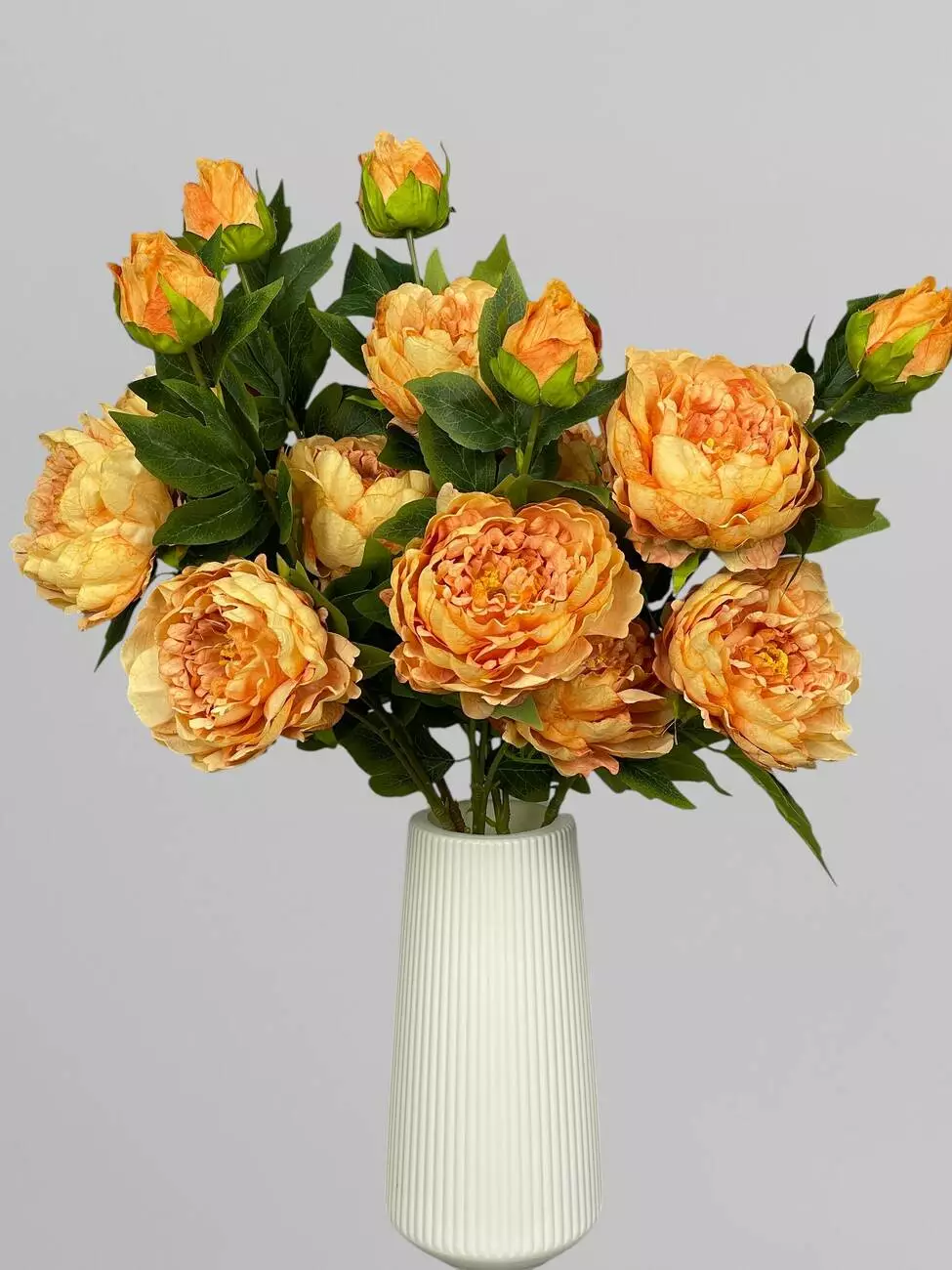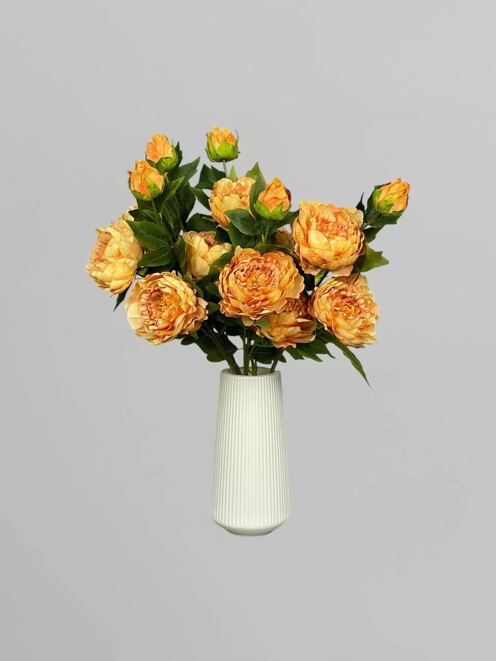 Штучна піоновидна троянда з листям і бутонами, жовтий, 85 см