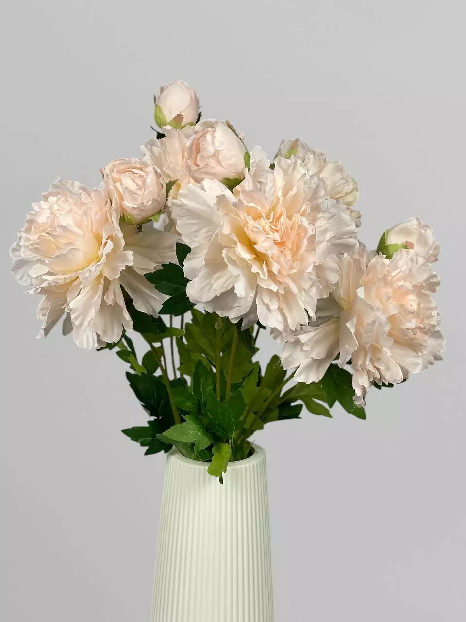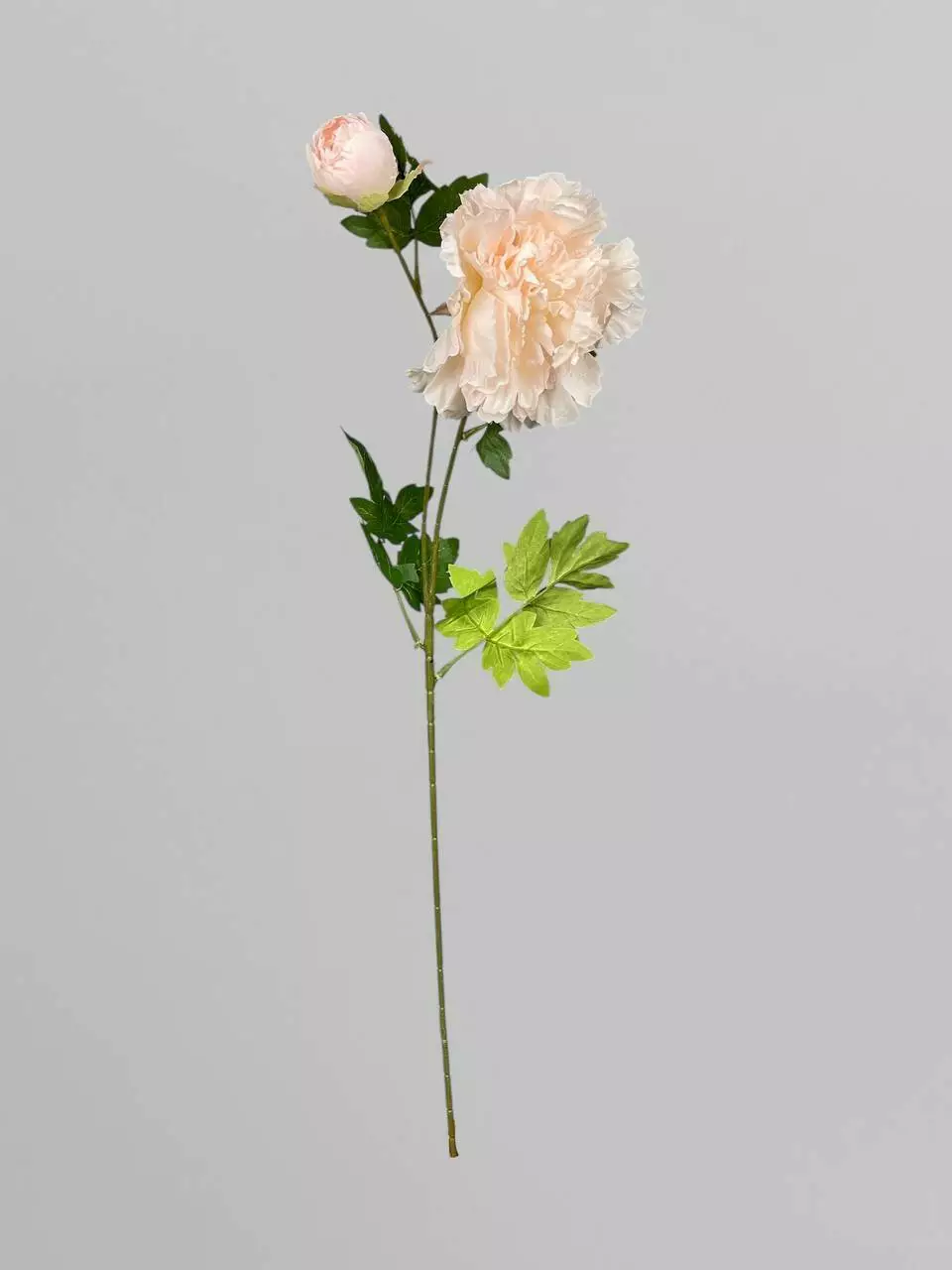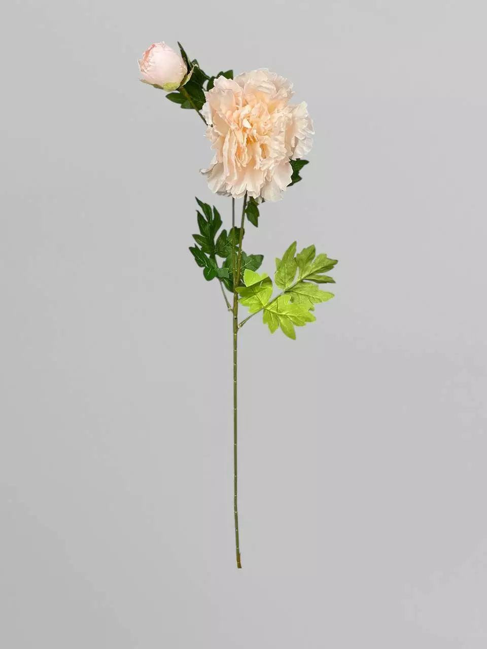 Штучна півонія на стеблі 1+1, сатин, персиковий, 84 см