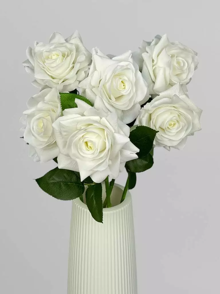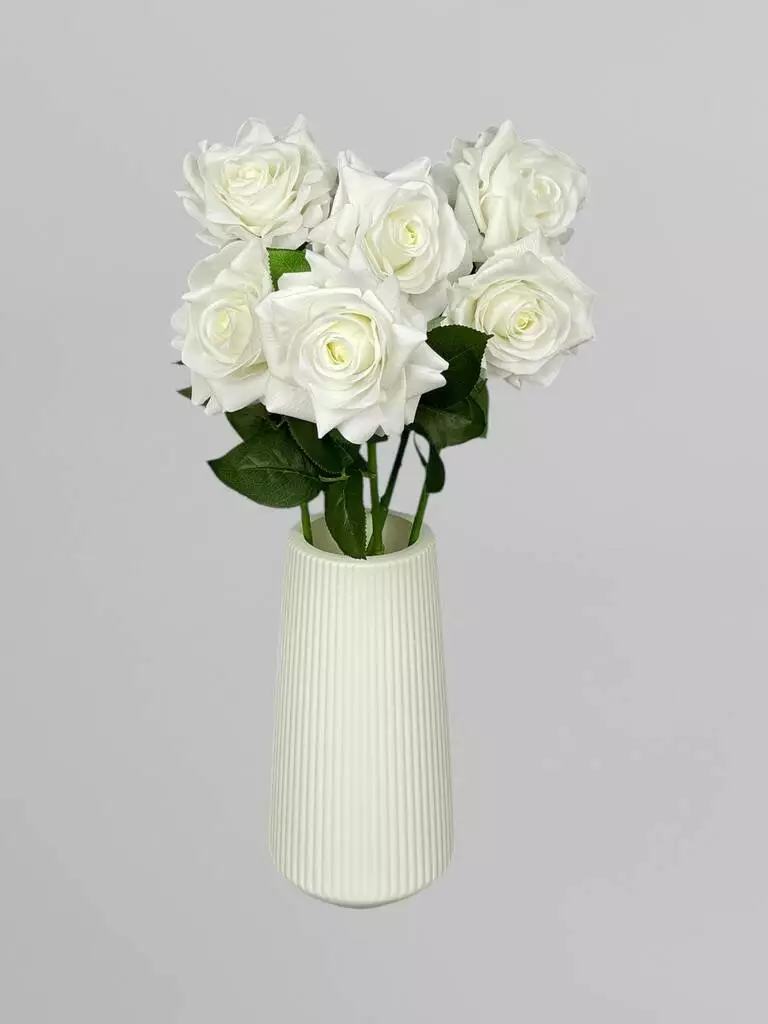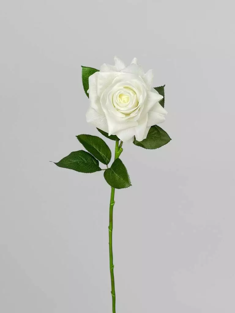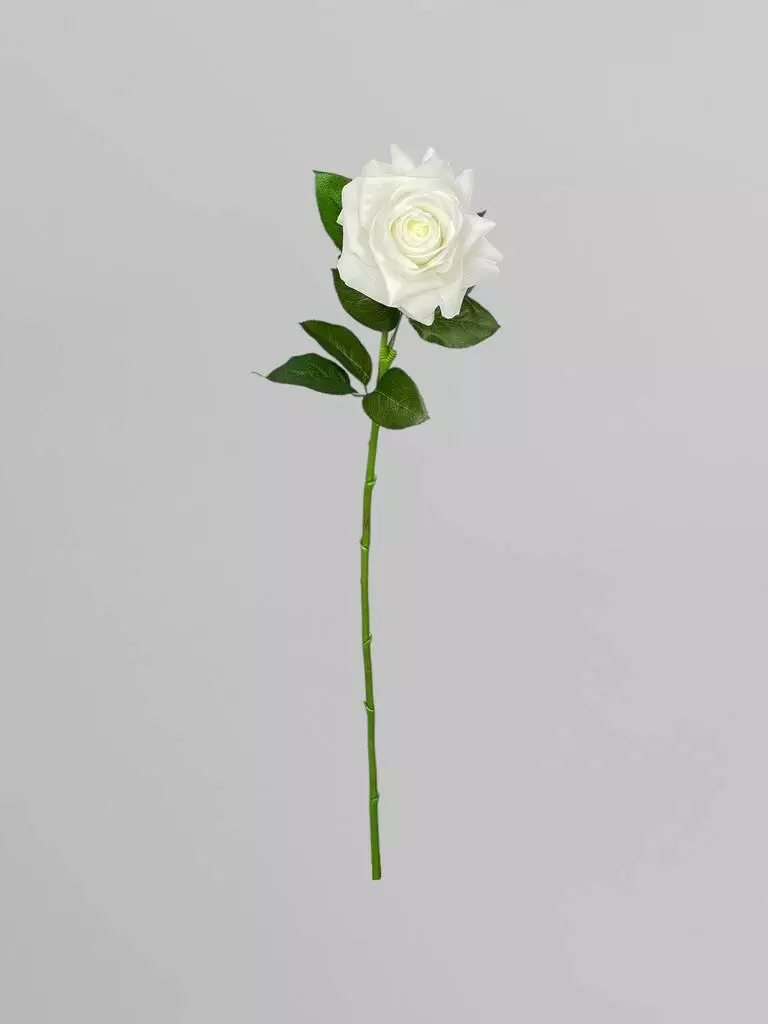 Штучна троянда на стеблі для декору Real Touch 1 суцвіття, білий, 64 см