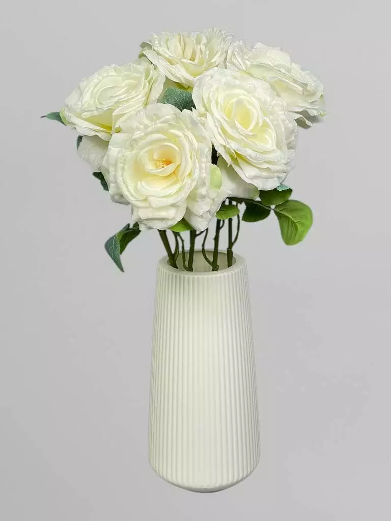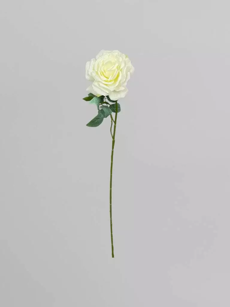 Штучна троянда на стеблі для декору з сатину, білий, 64 см