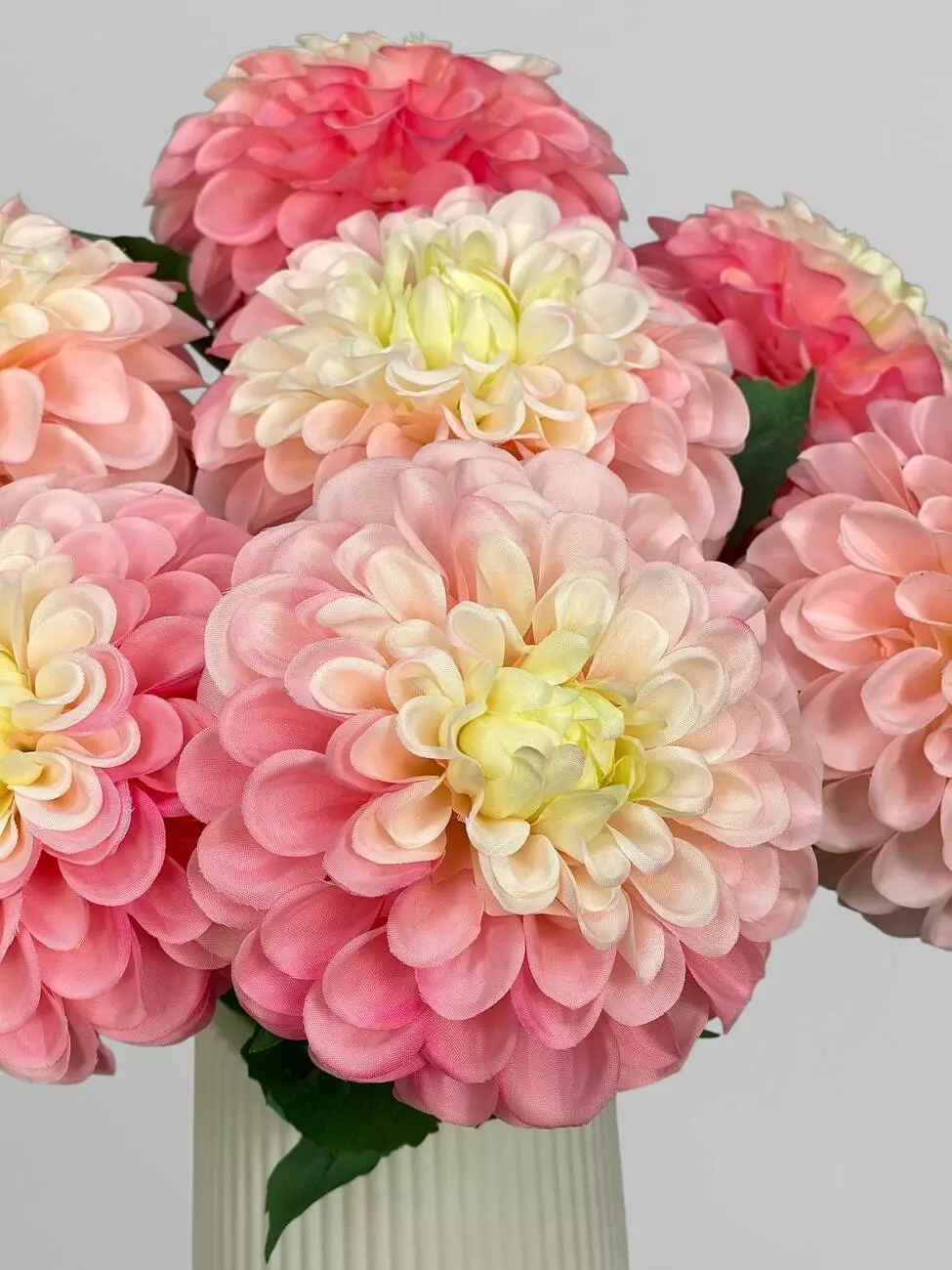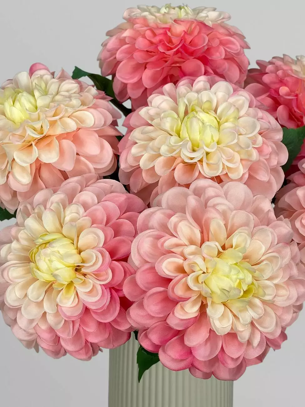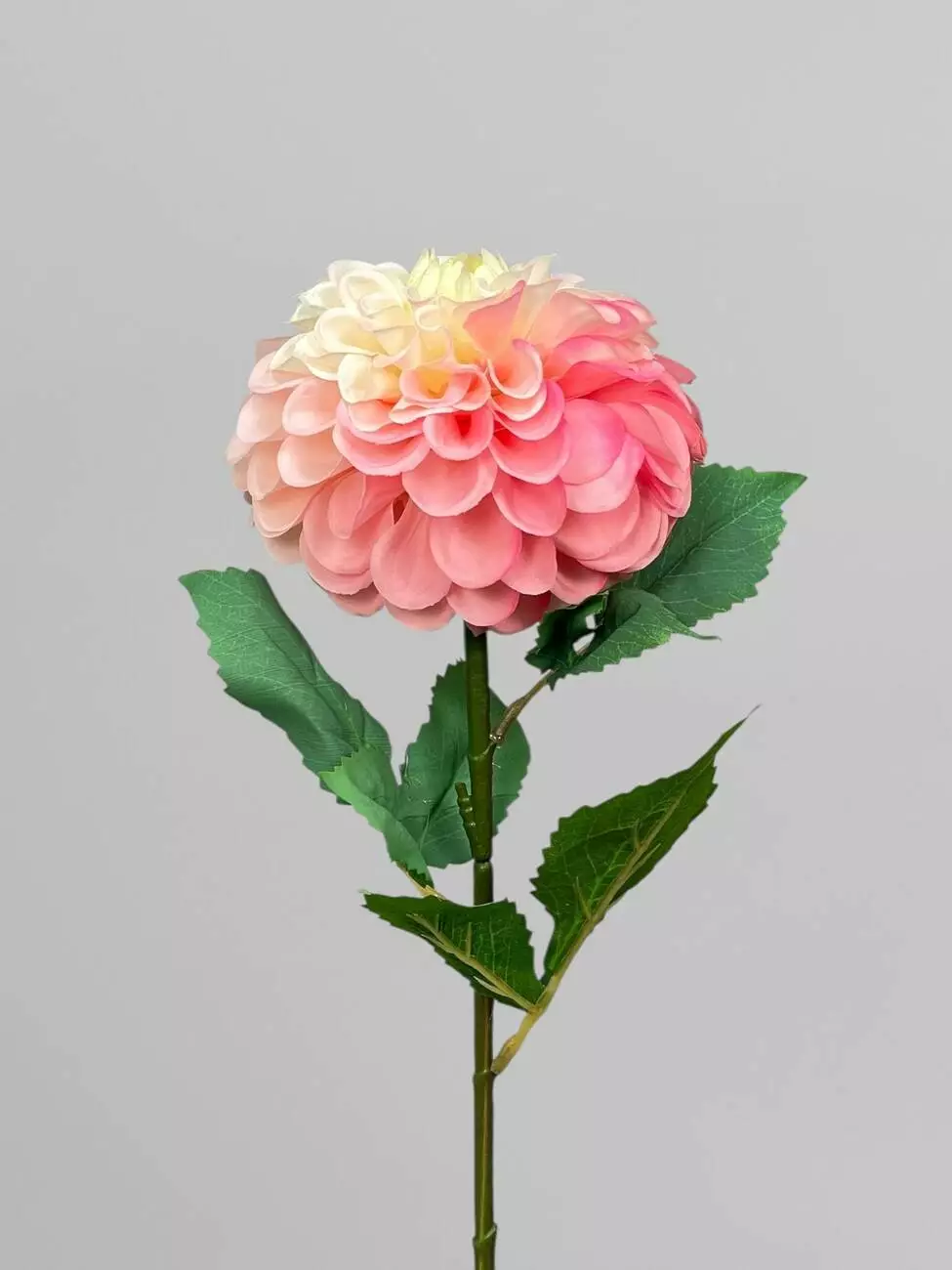 Штучна жоржина на стеблі, сатин, біло-рожевий, 63 см
