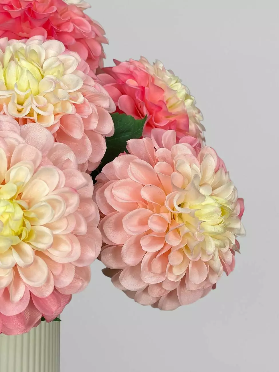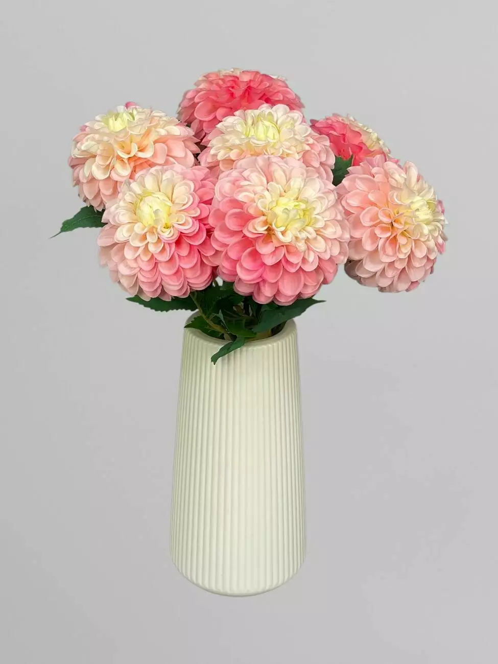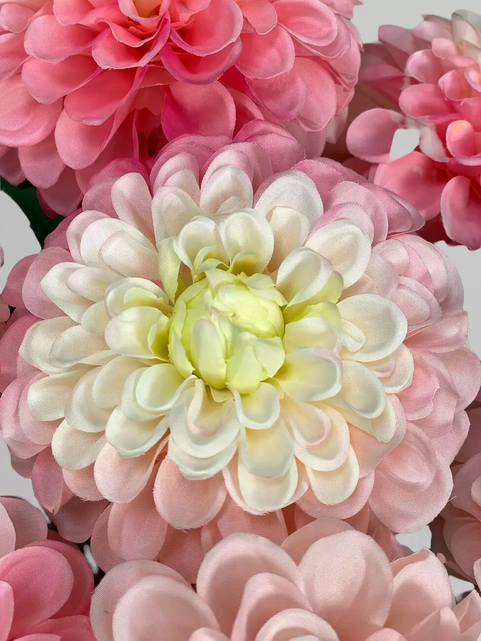 Штучна жоржина на стеблі, сатин, біло-рожевий, 63 см