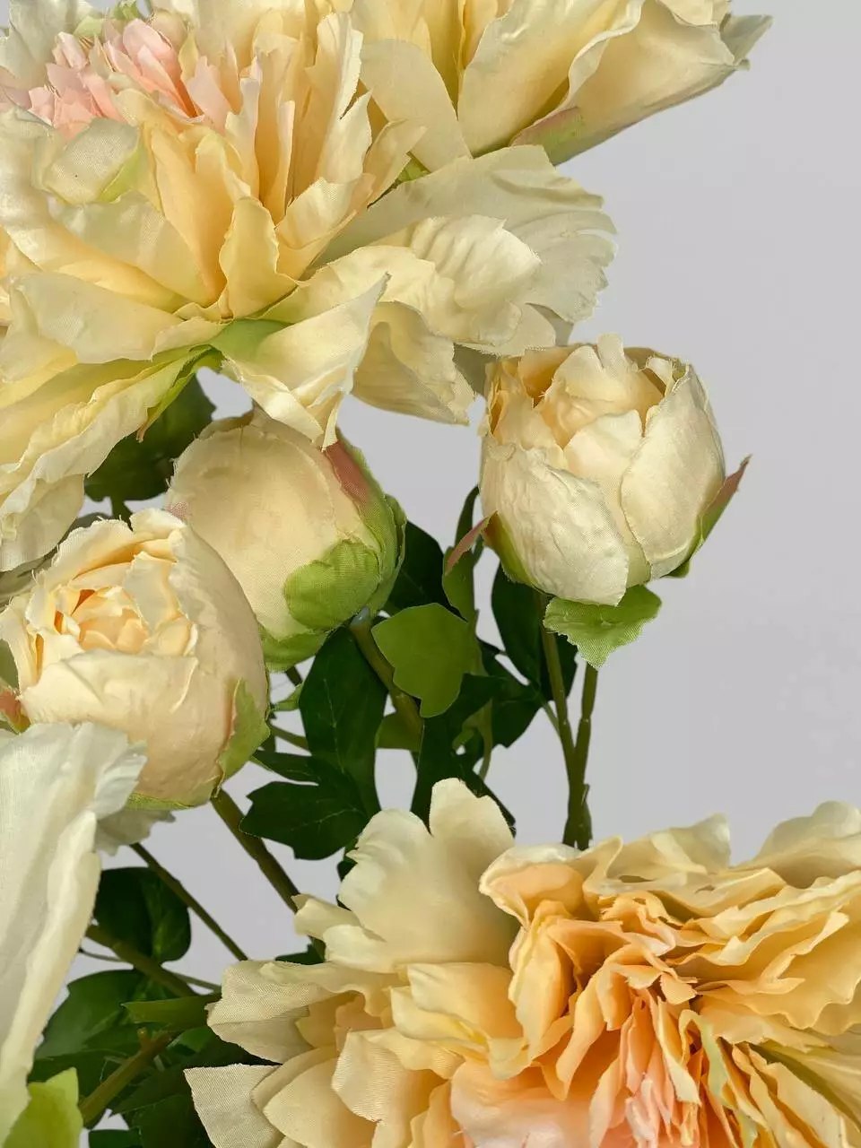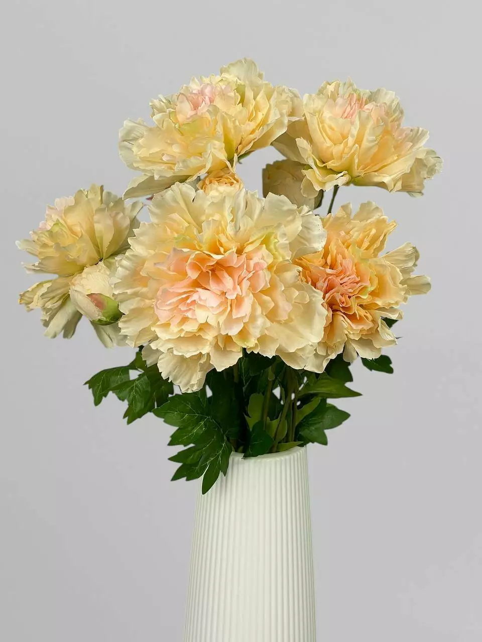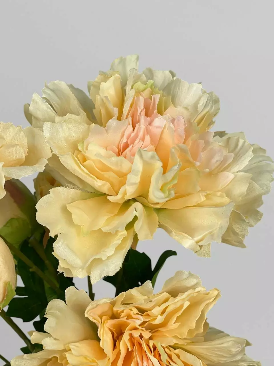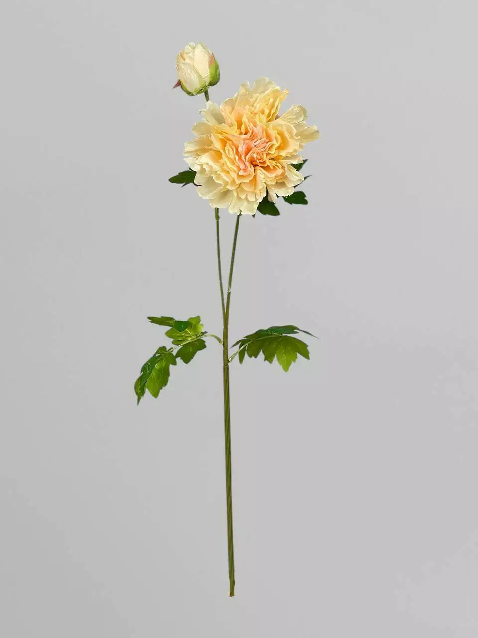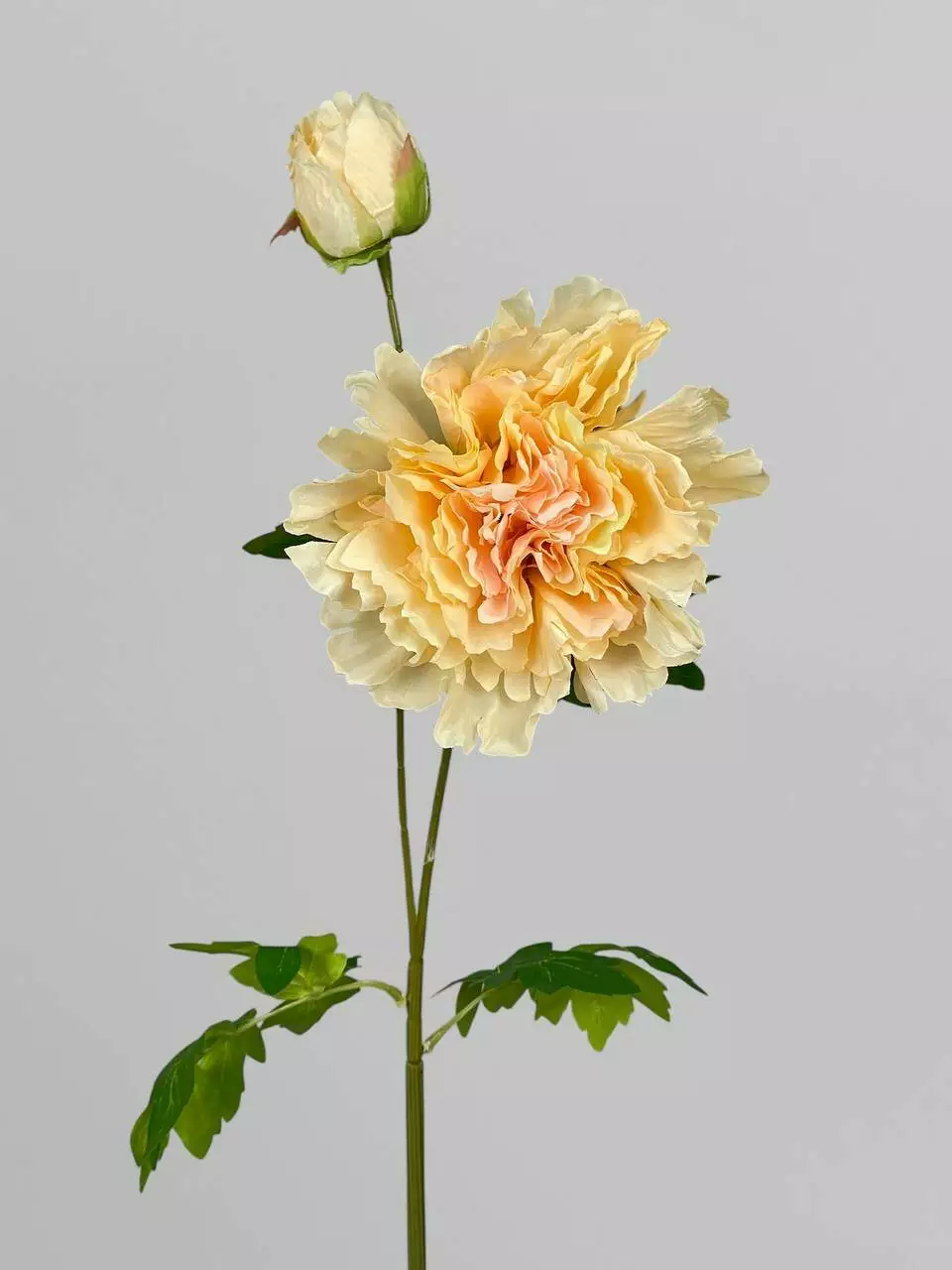 Штучні квіти півонії на стеблі 1+1, сатин, яскраво-персиковий, 84 см