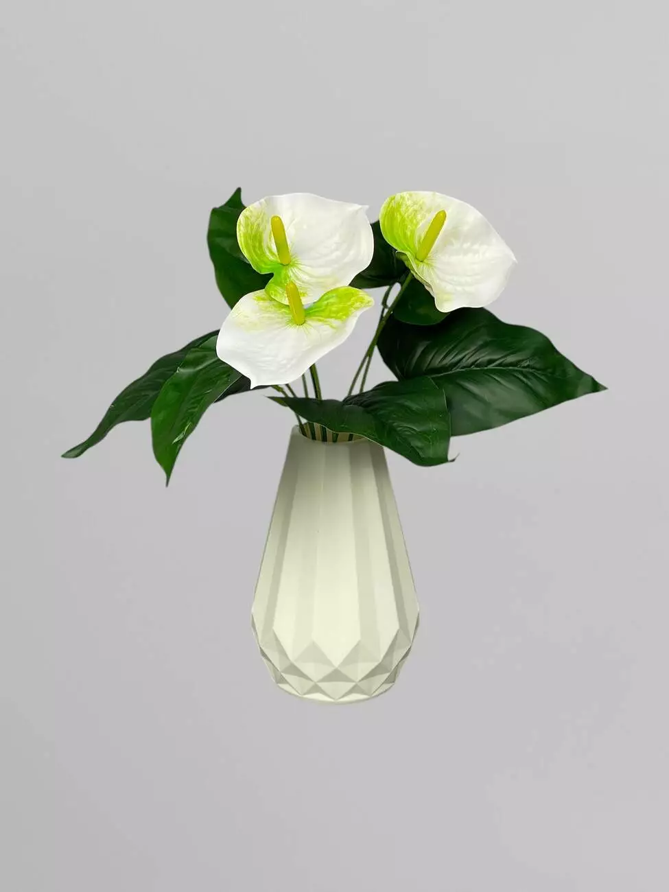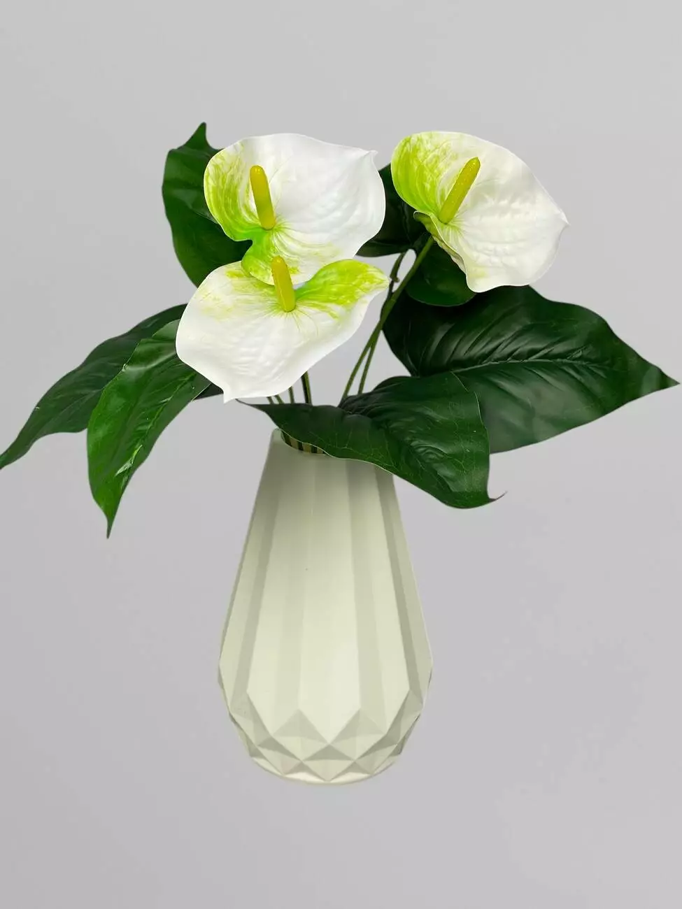 Штучний букет антуріуму, 3 квітки, білий, 32 см