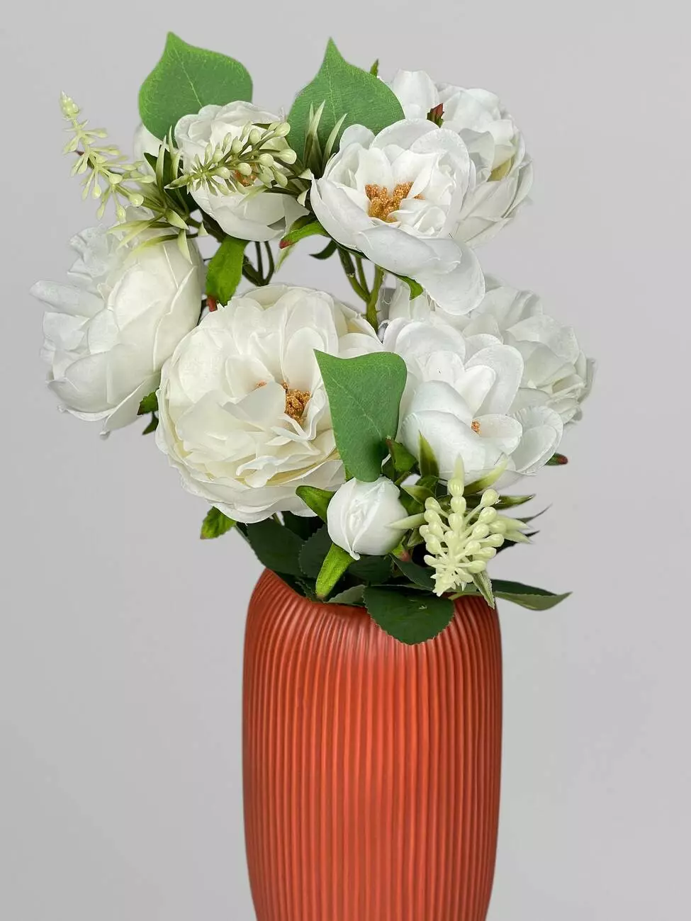 Штучний букет троянд Девіда Остіна з сатину, білий, 46 см