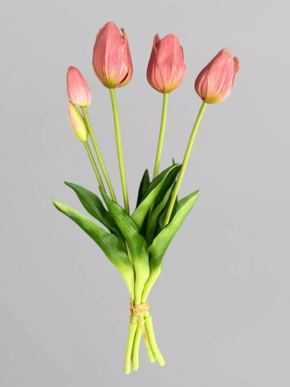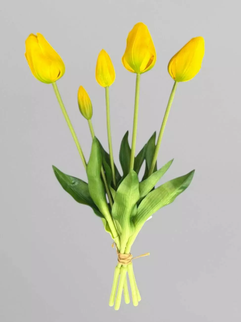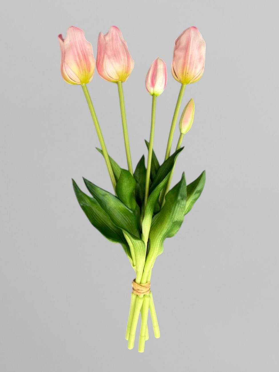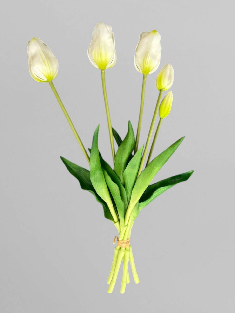 Штучний букет тюльпанів з латексу, 5 шт, білий 41 см