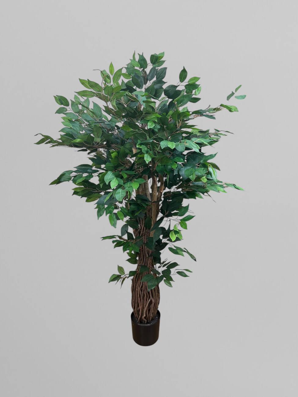 Штучний фікус Бенджаміна Ліана — це ідеальне рішення для створення затишної та стильної атмосфери у вашому просторі. Завдяки висоті 150 см він стає помітним декоративним акцентом, що гармонійно доповнить інтер’єр житлових кімнат, офісів, ресторанів чи готелів.