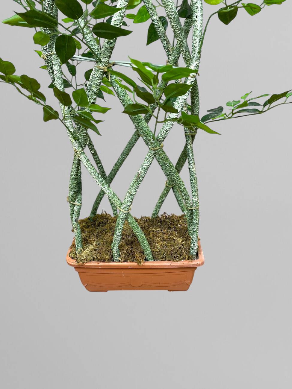 Штучний фікус Бенджаміна висотою 130 см — це витончене декоративне рішення, яке додає вашому простору природної гармонії та затишку. Ідеально підходить для дому, офісу, кафе, ресторанів чи інших приміщень, де потрібно створити стильний і спокійний акцент.