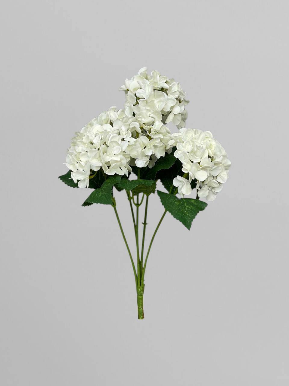 Штучний кущ гортензії 5 суцвіть, білий, 42 см