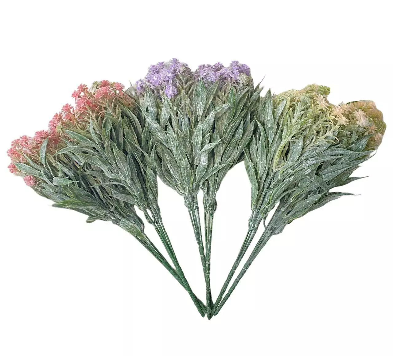 Штучна гілка-кущ резеди з пластмаси 33см. У прозорій фабричній