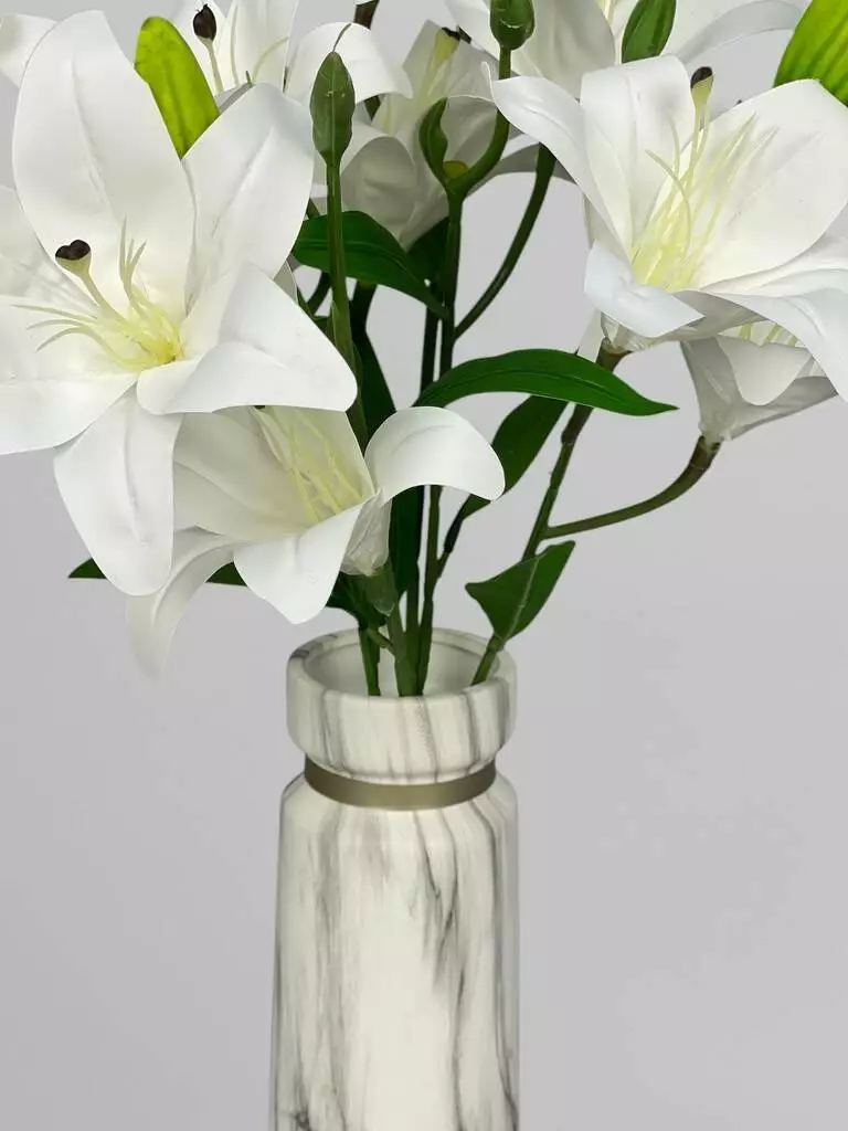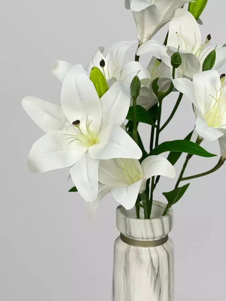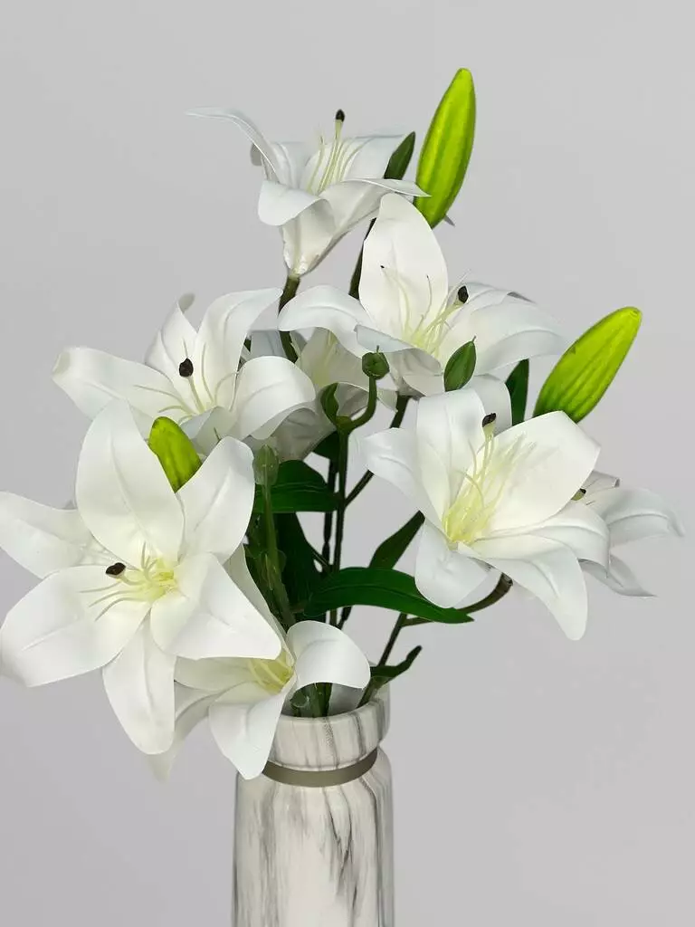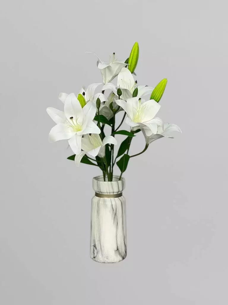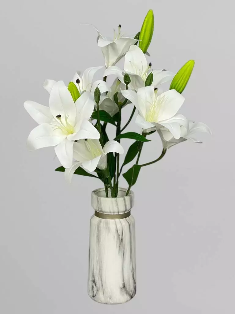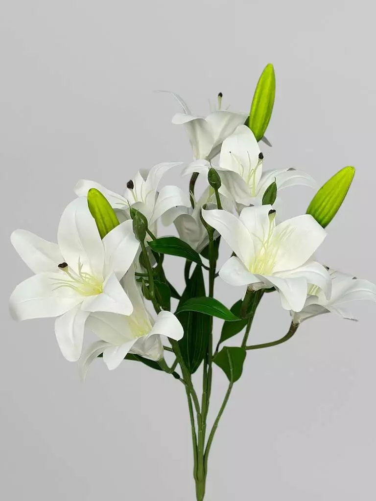 Штучний кущ з квітами лілії (9 бутонів), білий, 53 см