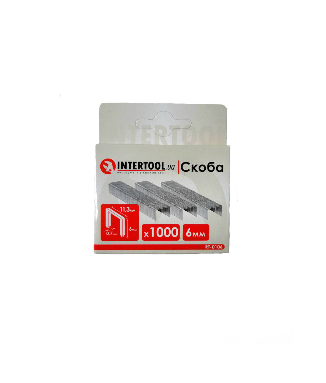 Скоба 6 мм, уп. 1000 шт., ширина 11.3 мм INTERTOOL RT-0106