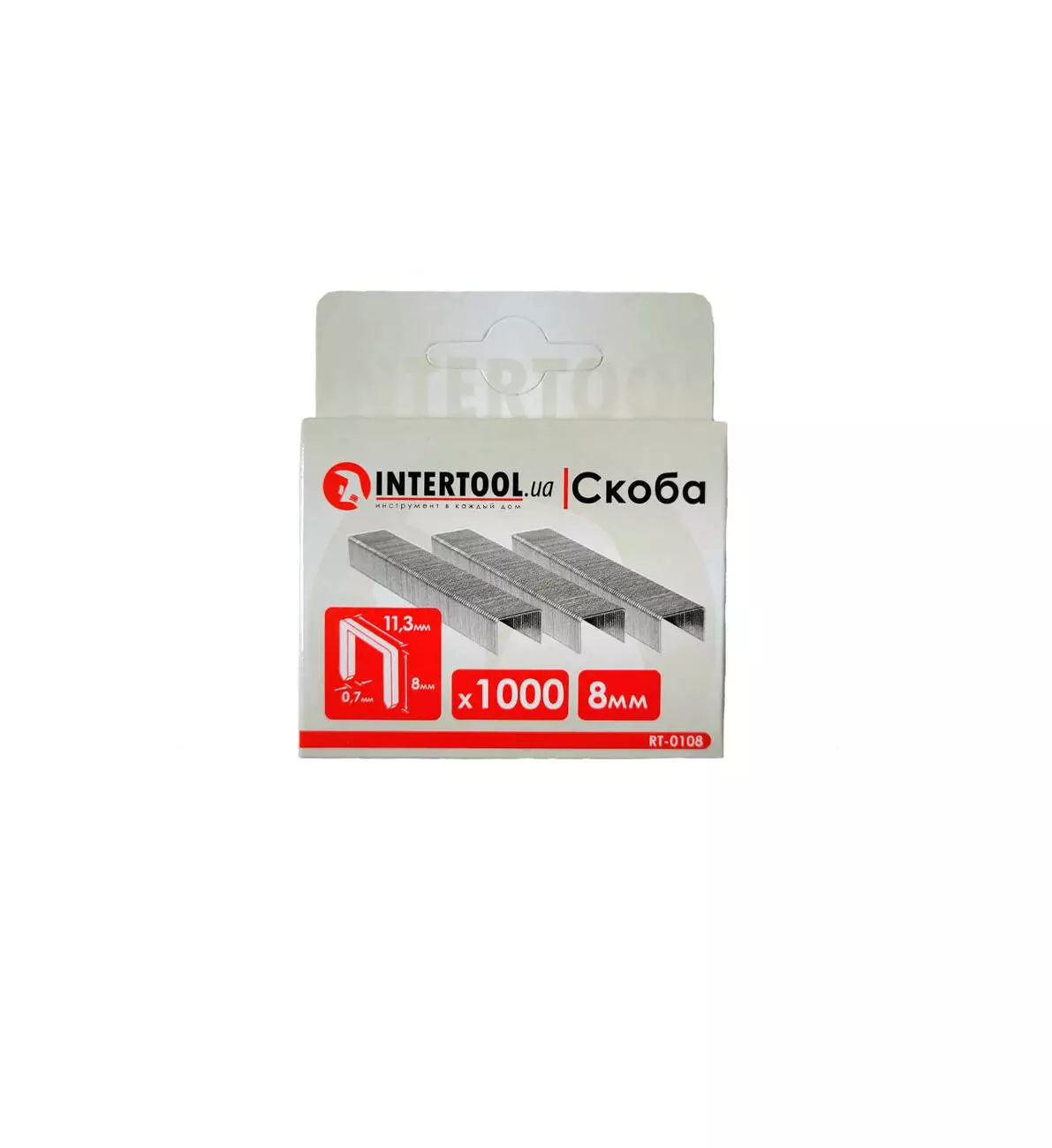 Скоба 8 мм, уп. 1000 шт., ширина 11.3 мм, переріз 0.70 мм INTERTOOL