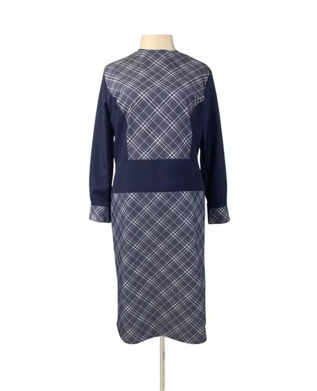 середньої довжини у темно-синьому кольорі із вставками у клітину.