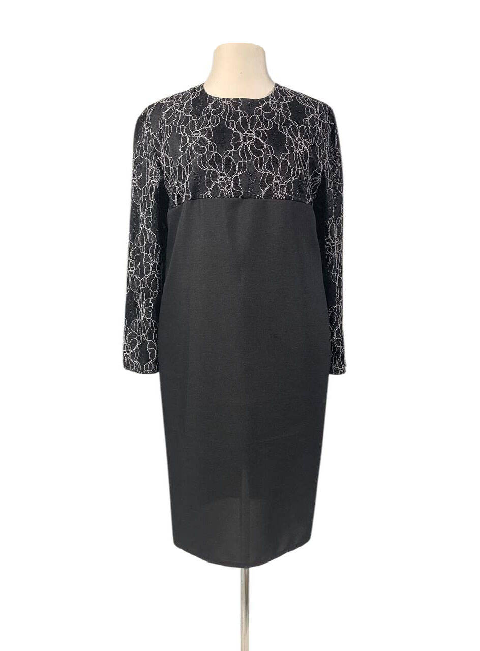 прямого крою, виконаною в класичному стилі. Довжина сукні трохи